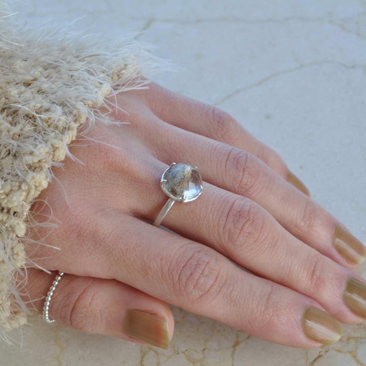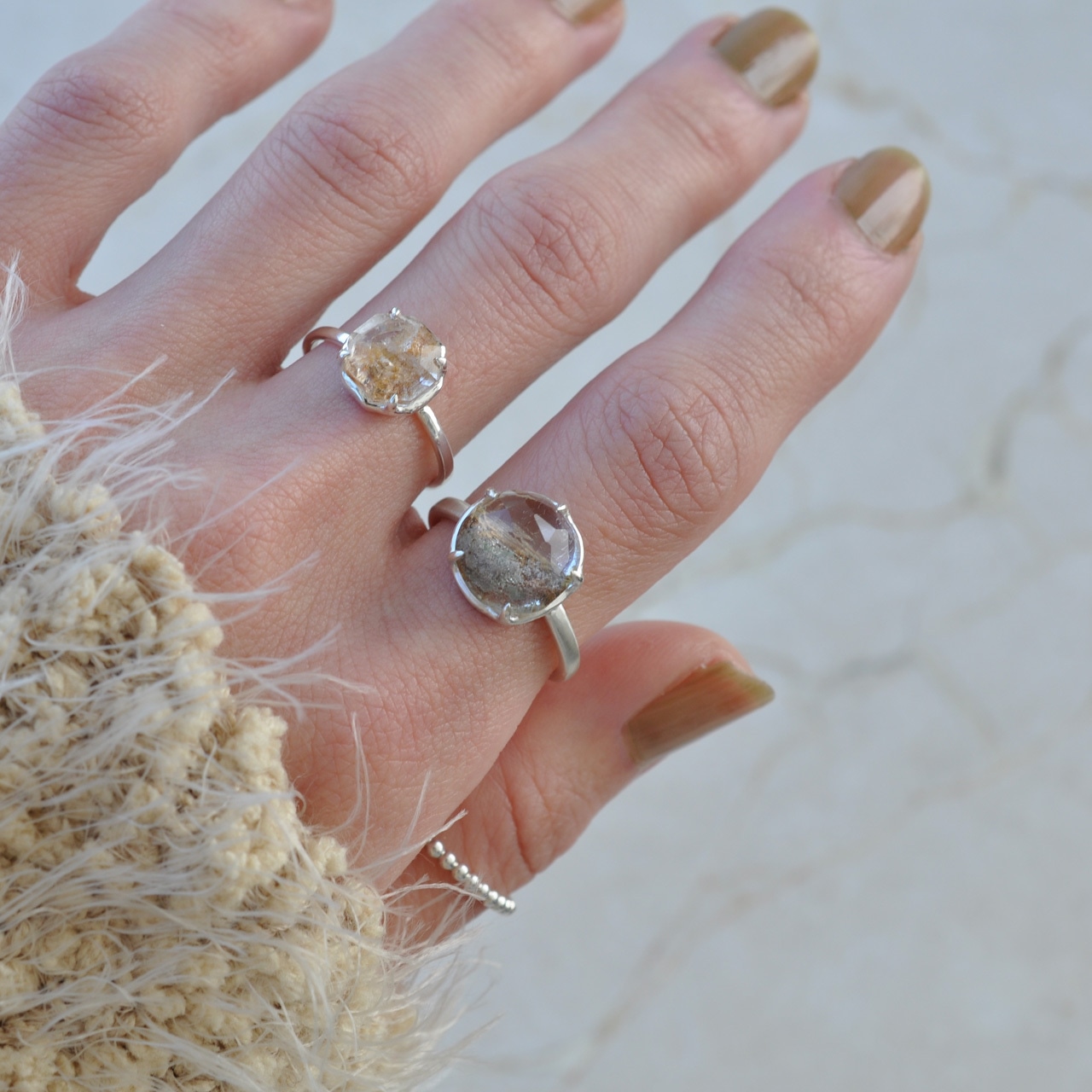 光が差し込むと、ローズカットのカット面を通して輝きが増し、まるで万華鏡を覗き込んだような幻想的な美しさを見せてくれます。