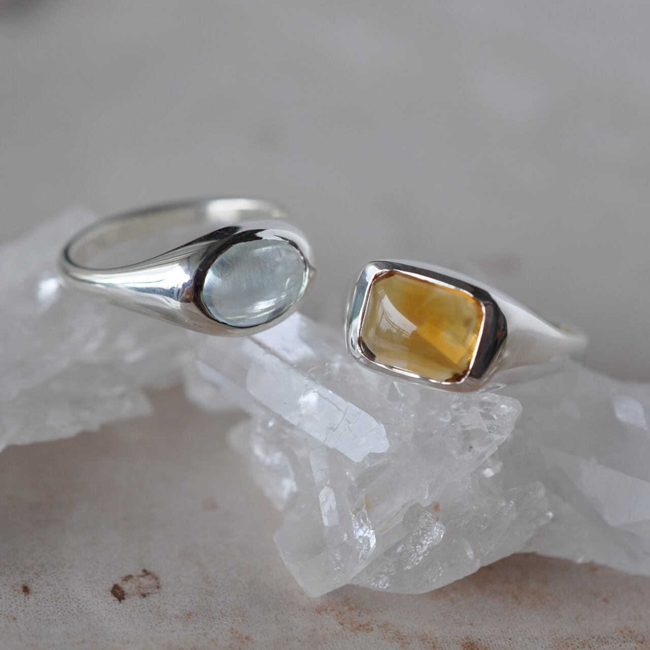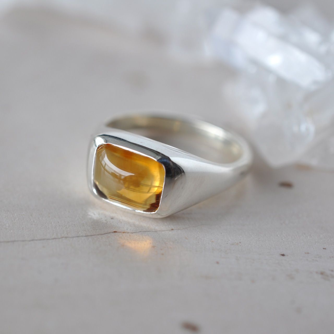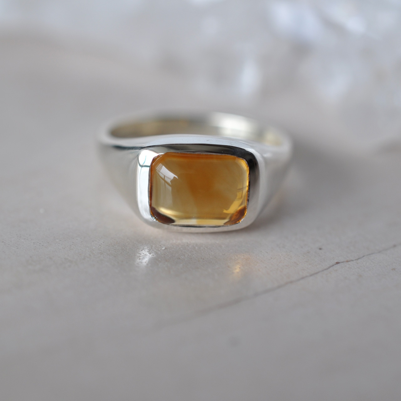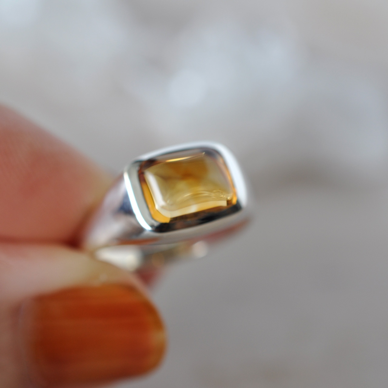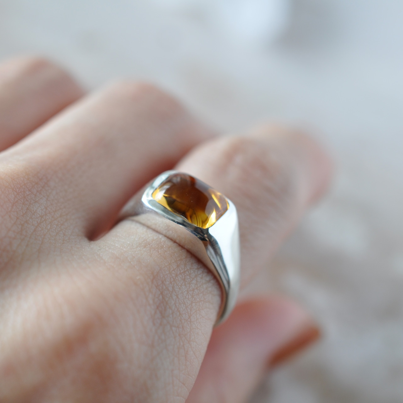 陽だまりのような温かみと透明感が、溶け合うように広がるシトリンをセットした1点物のシルバーリング。