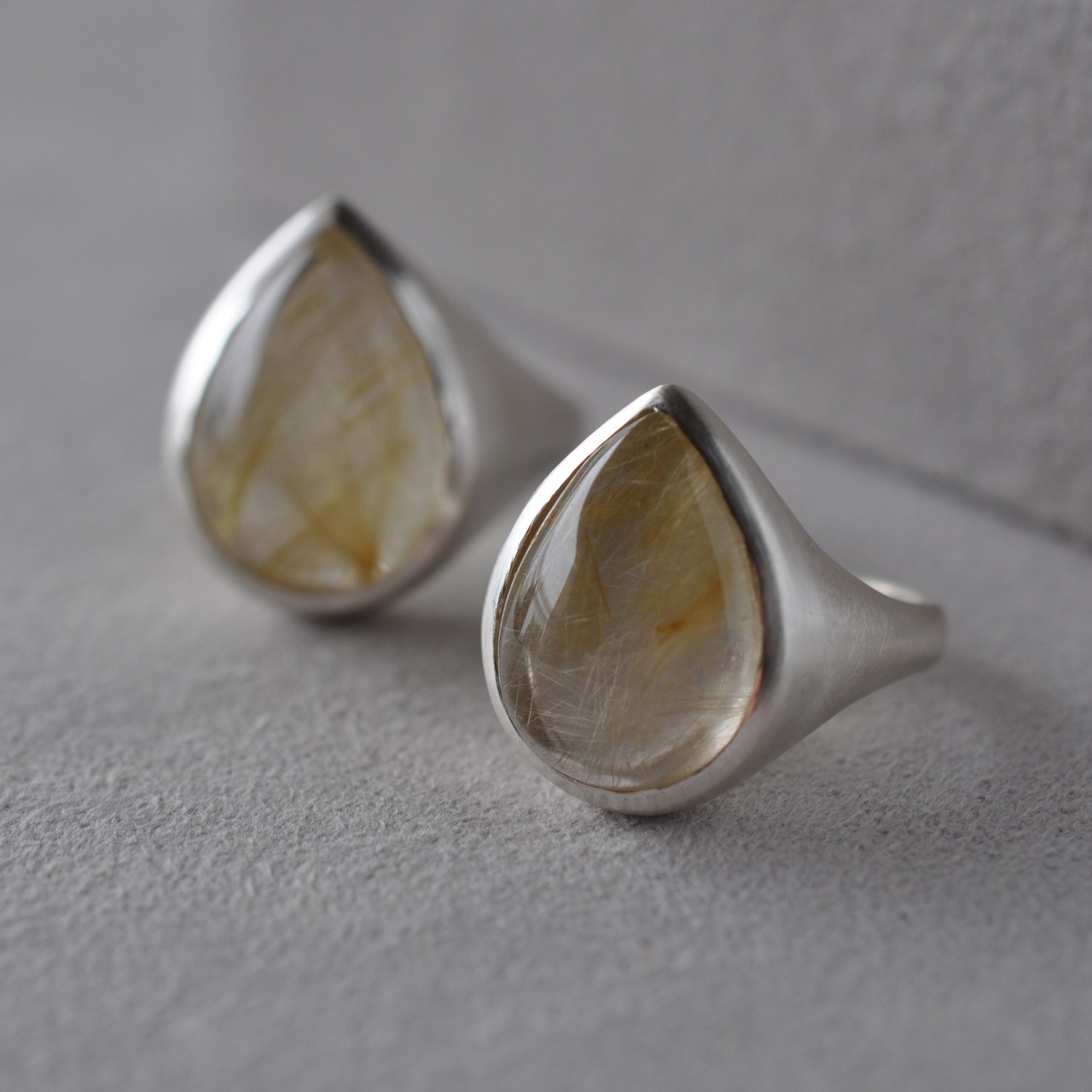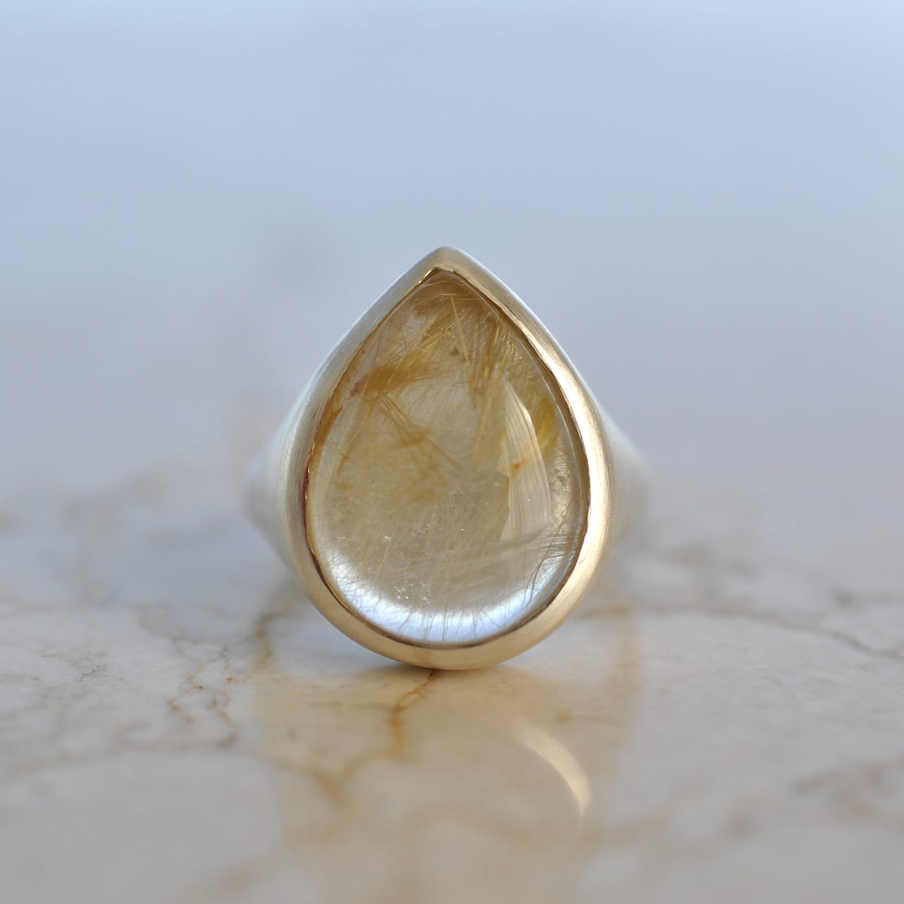 石の上部に集まるルチルが、静かな水面に差し込む光のように穏やかにきらめくゴールドルチルクォーツ。