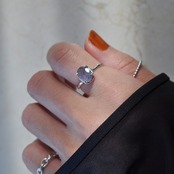 縦向きにセットしたオーバルシェイプが、指元にすっと馴染むアイオライトサンストーン。