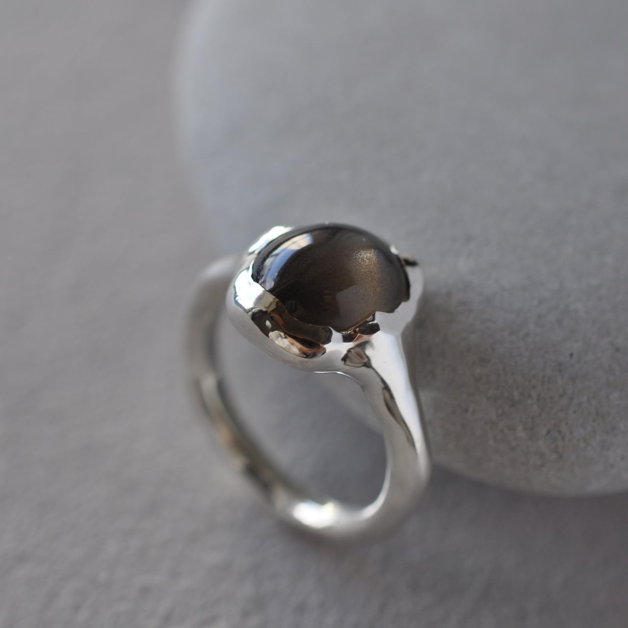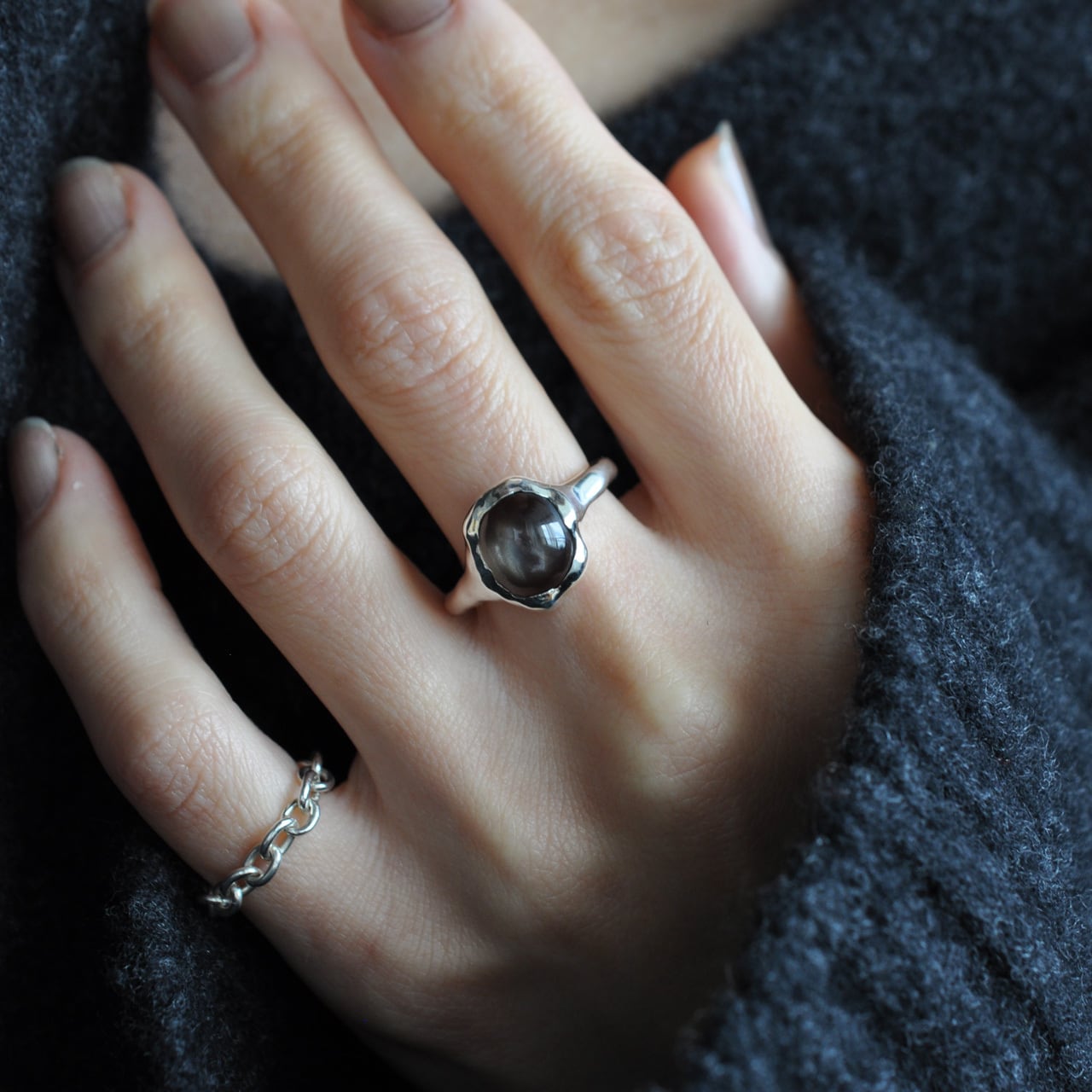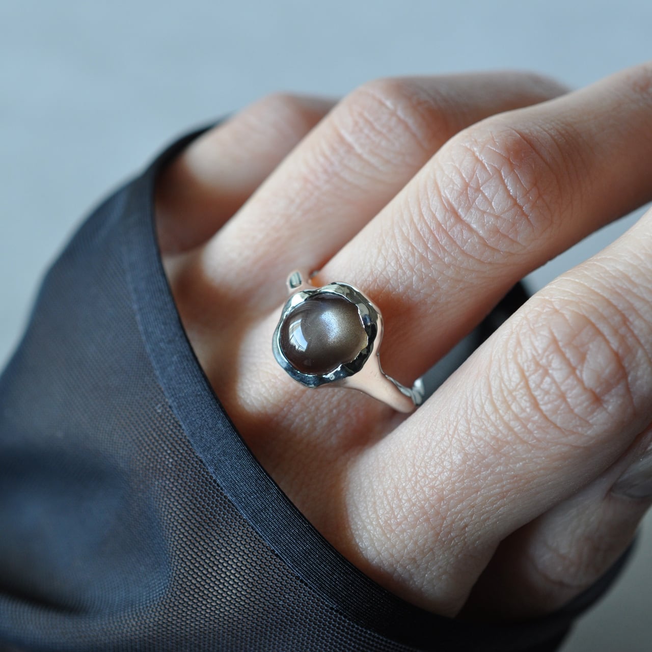 静かな夜の奥行きを閉じ込めたような、ブラックムーンストーンのシルバーリング。