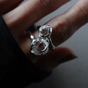 結晶の形を活かし、有機的なシルエットのシルバーで包み込むように仕立てました。
