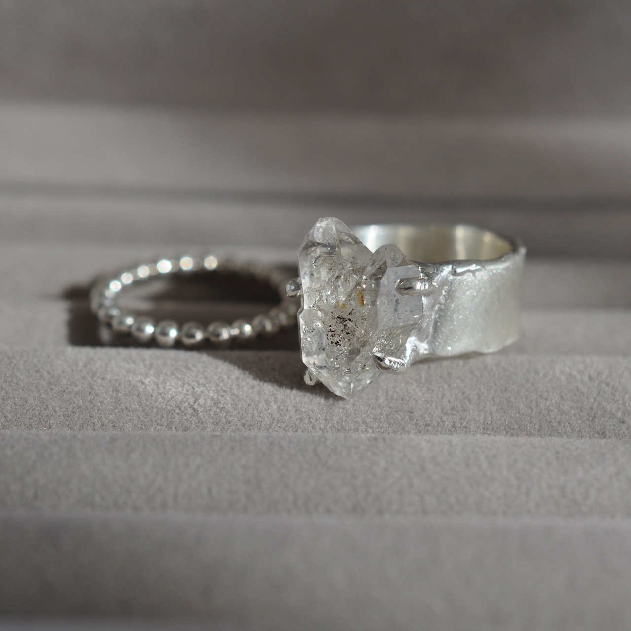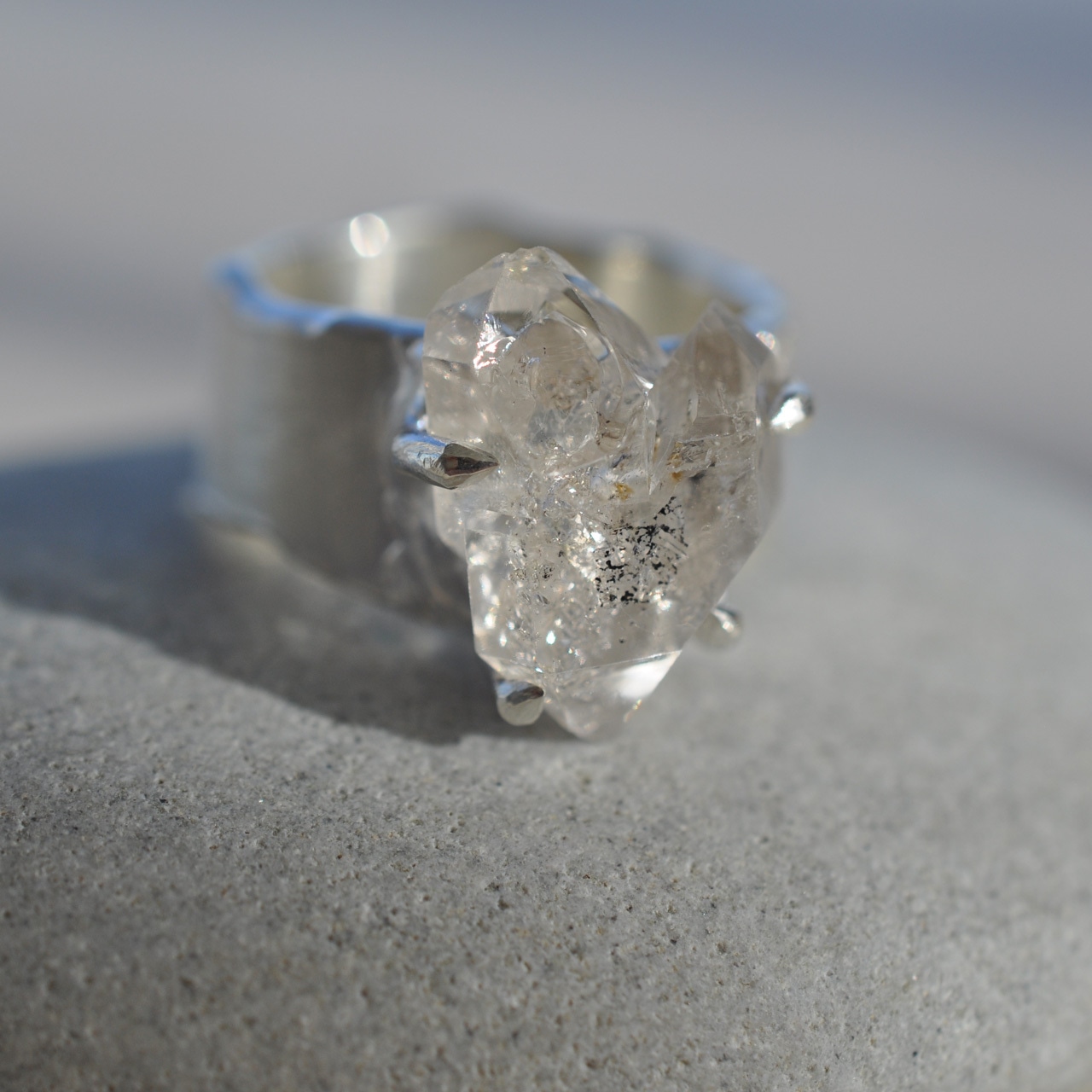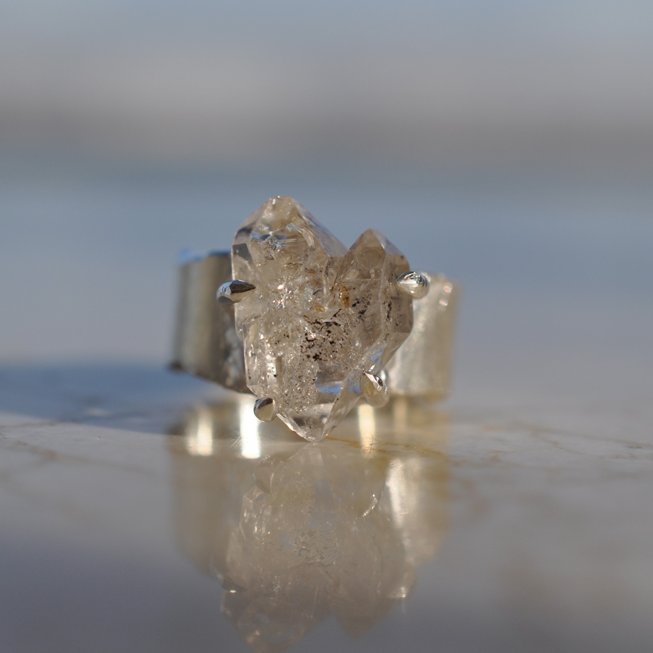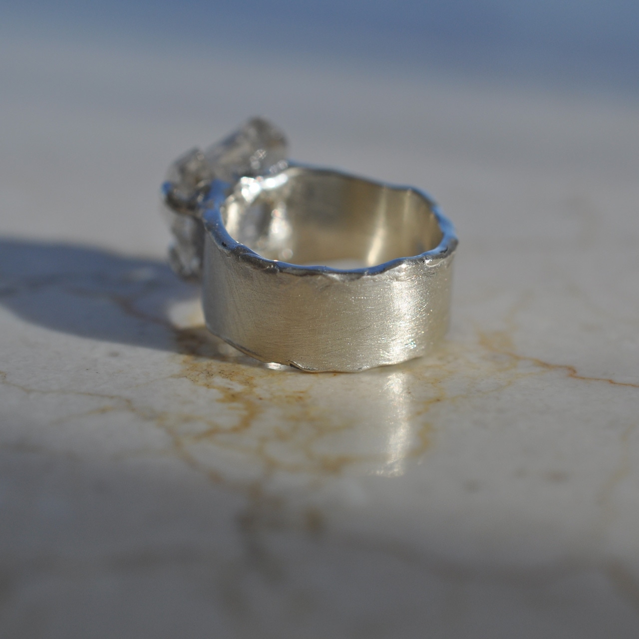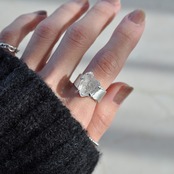 こちらは、オイルインクォーツの原石をセットしたシルバーワイドリング。