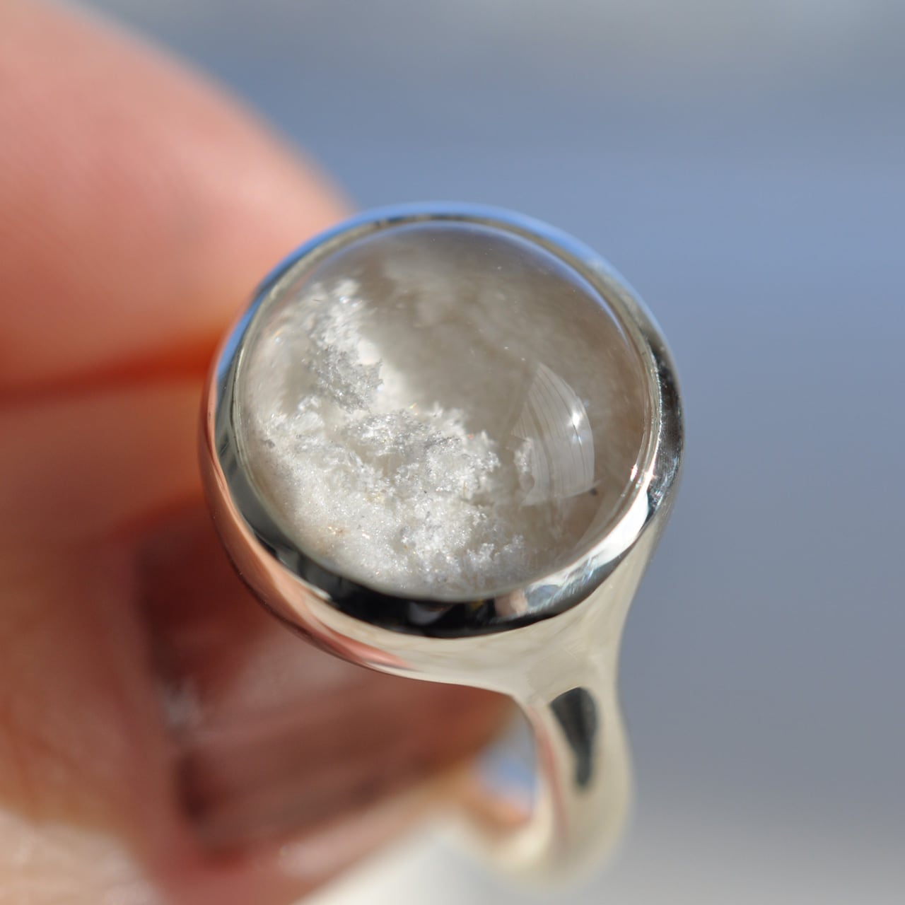 透明度の高いクリスタルの中に、純白の雪が降り積もったようなホワイトガーデンクォーツ。