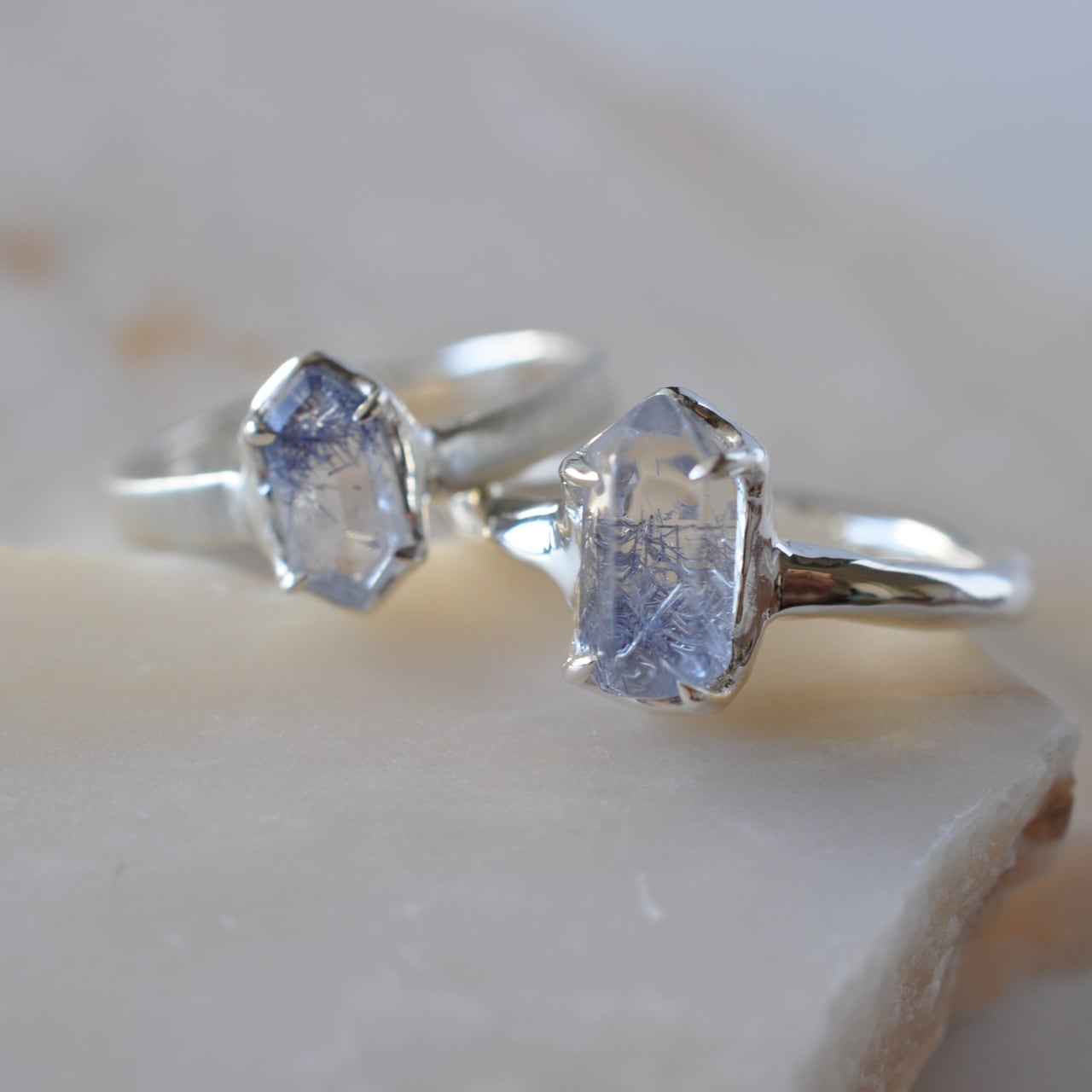 Dumortierite in Quartz Ring デュモルチェライトインクォーツ 六角柱 シルバーリング