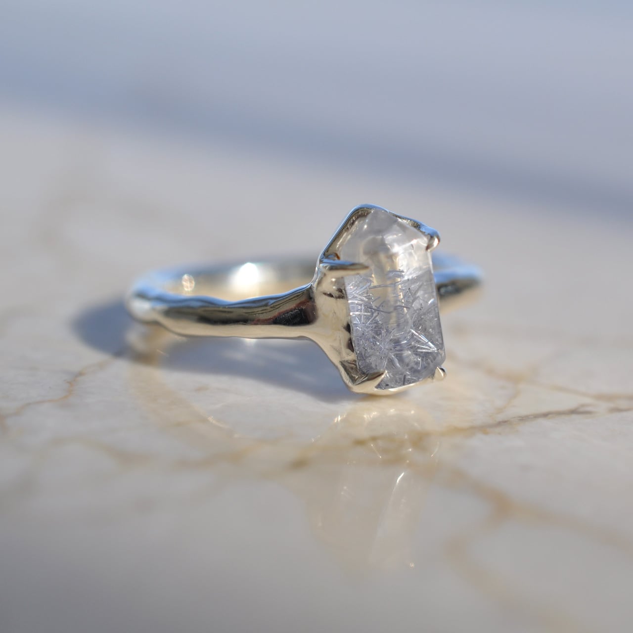わずかな揺らぎを帯びたフォルムが、石の存在感をやわらかく受け止めます。
