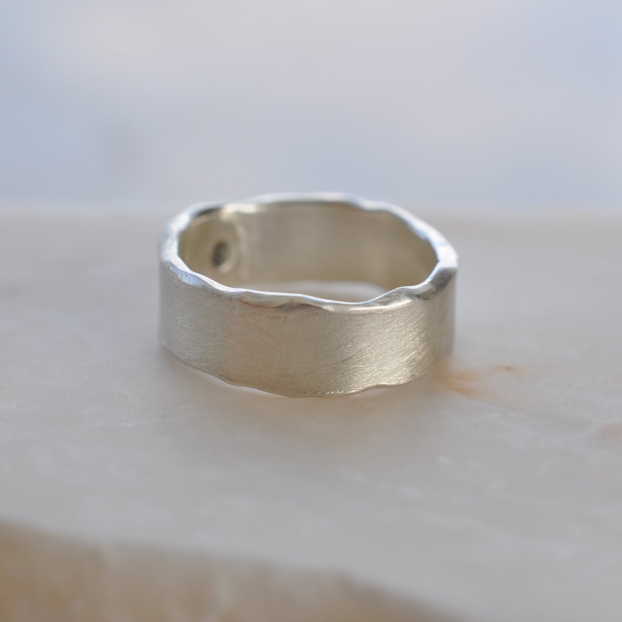 ワイドリングの存在感はそのままに、日常の装いにもすっと馴染むリングです。