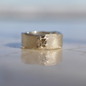 こちらは、落ち着いたカーキカラーのナチュラルダイヤモンドを留めたシルバーワイドリング。
