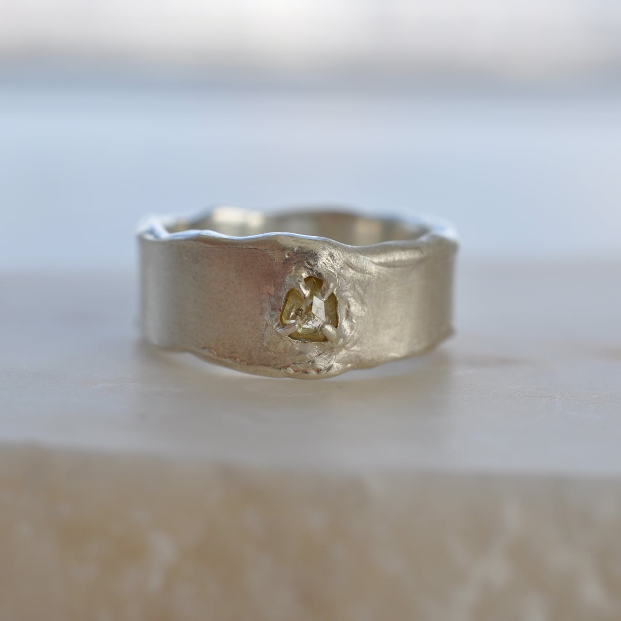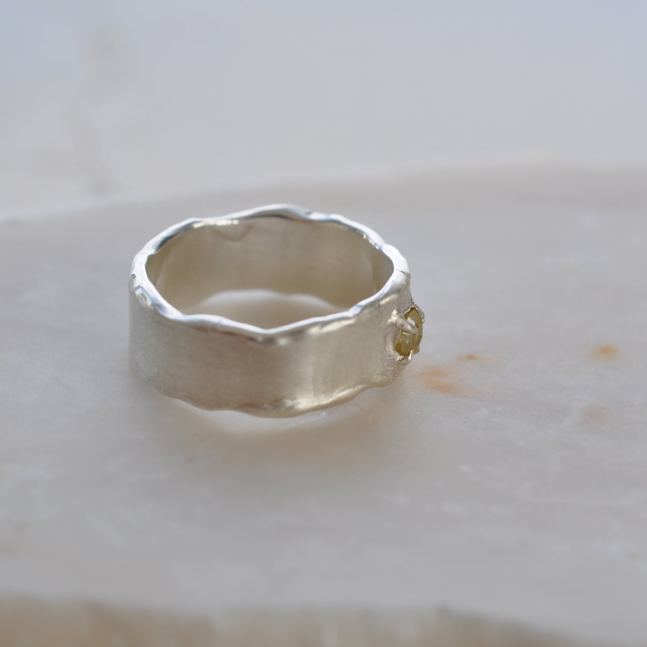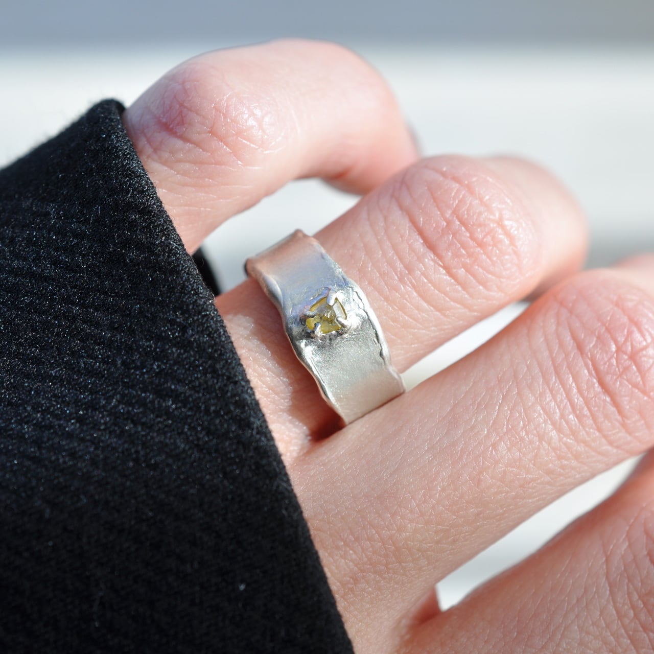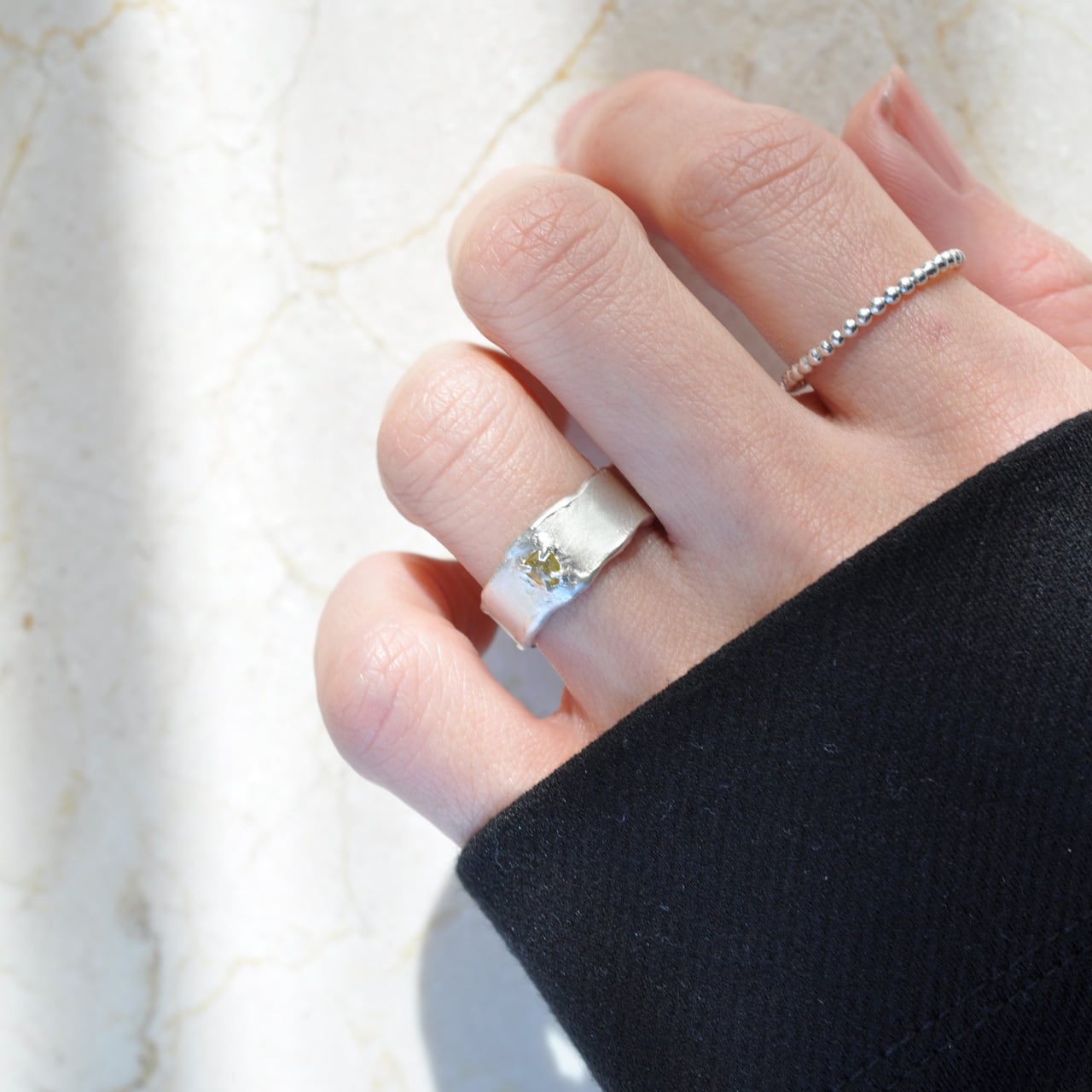 ワイドリングの存在感はそのままに、日常の装いにもすっと馴染むリングです。