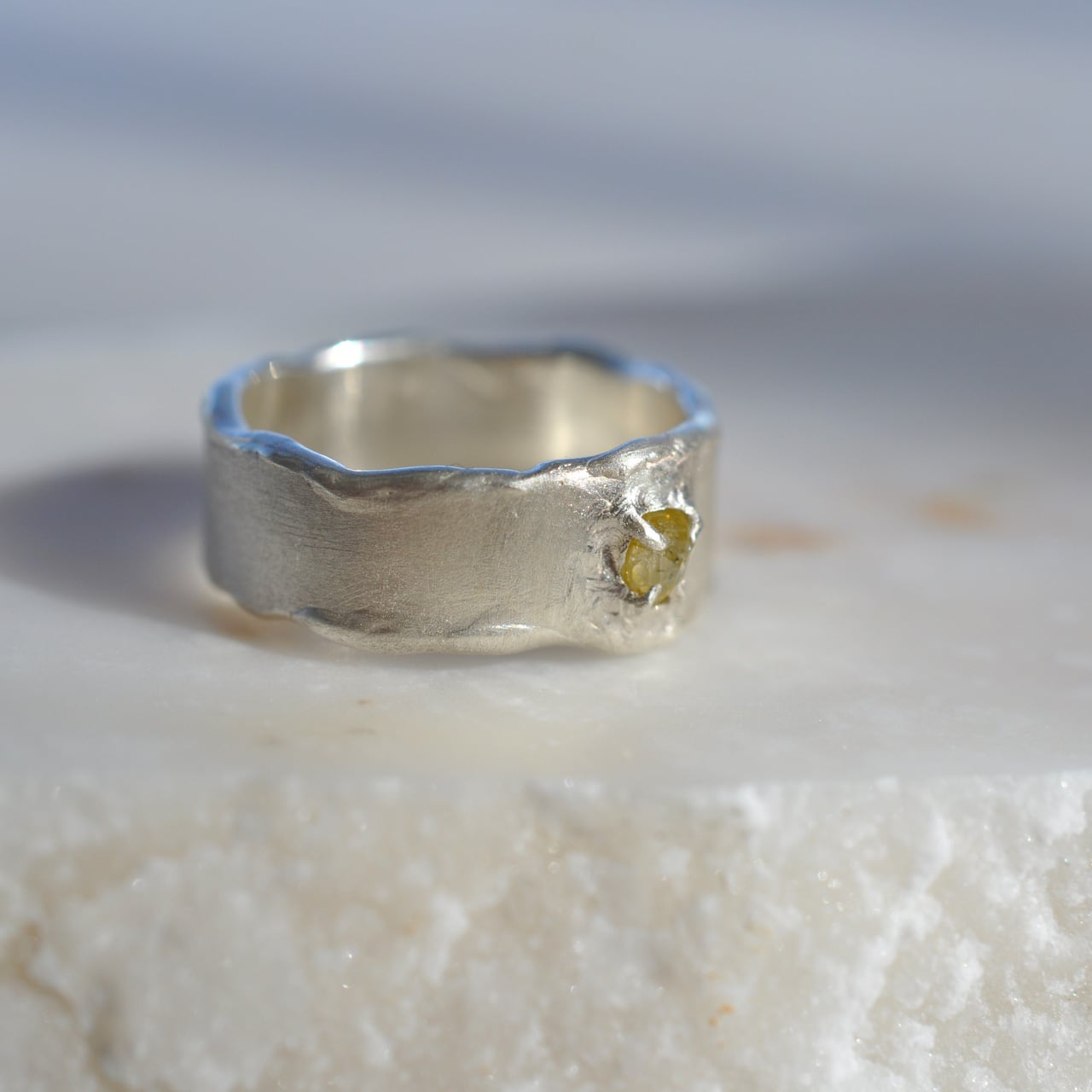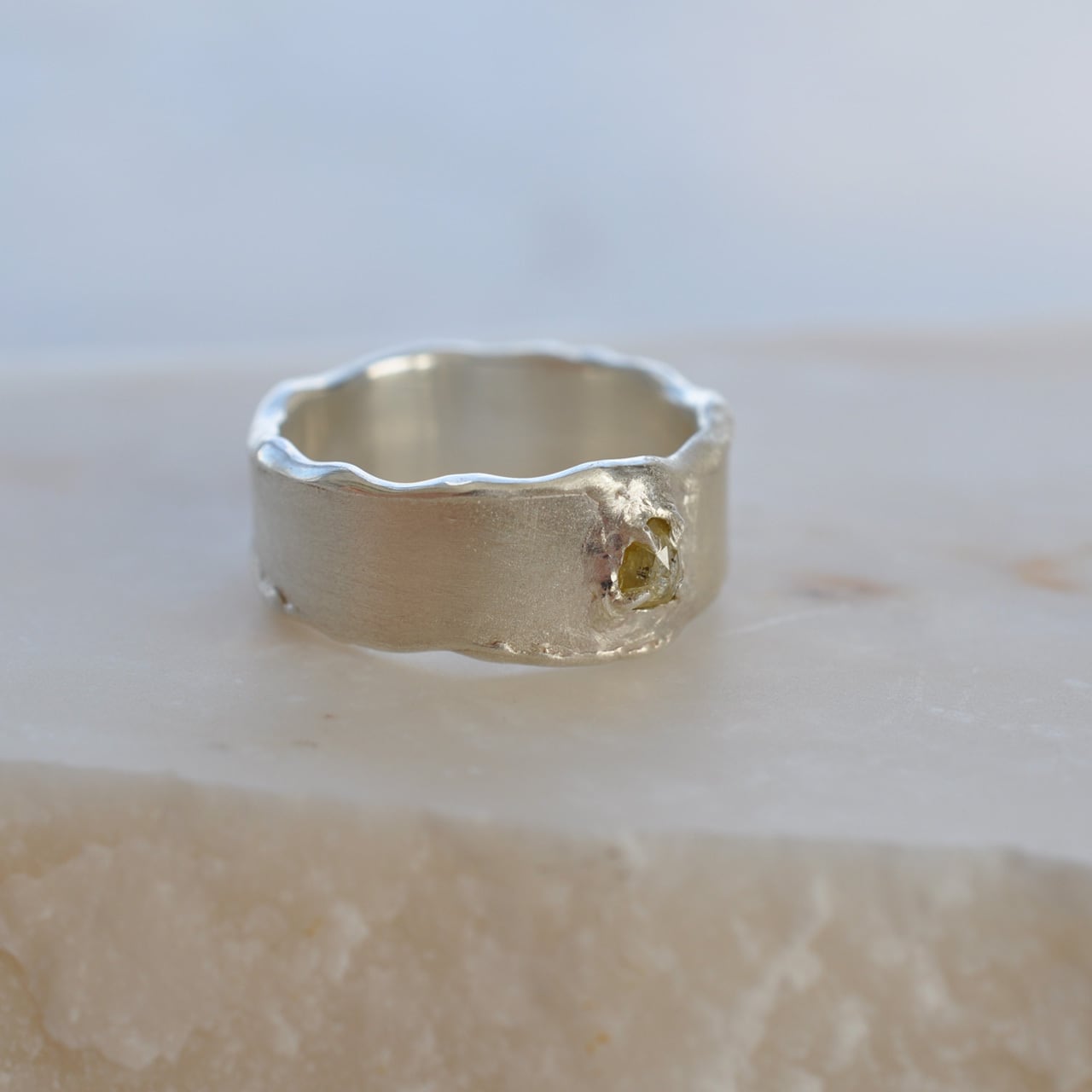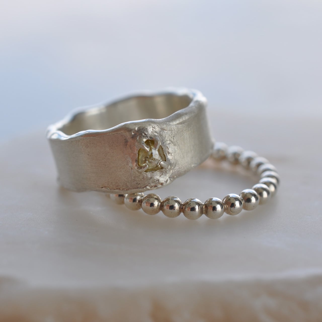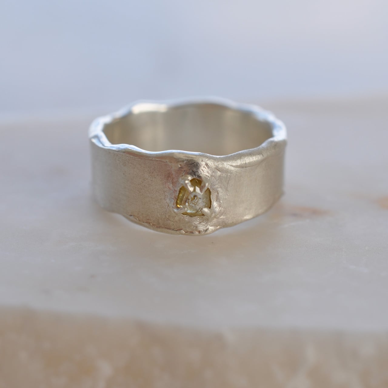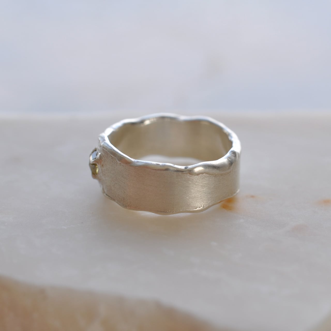 ワイドリングの存在感はそのままに、日常の装いにもすっと馴染むリングです。