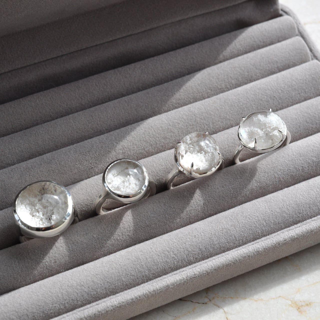 石の自然な景色にそっと寄り添うフォルムです。