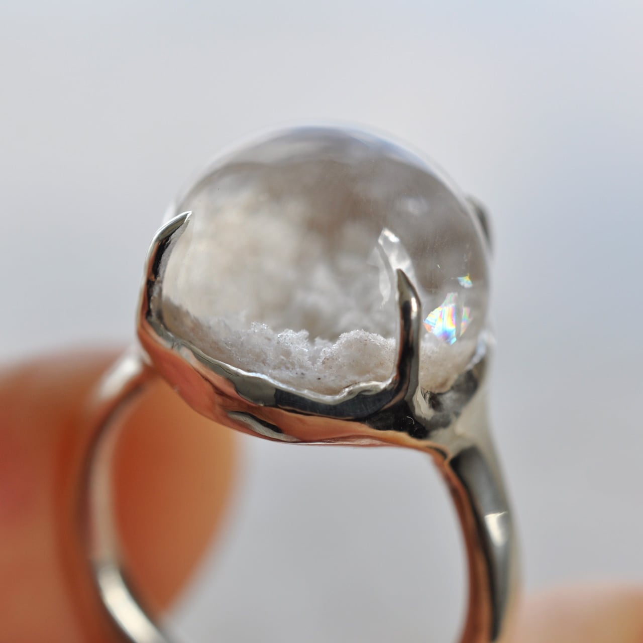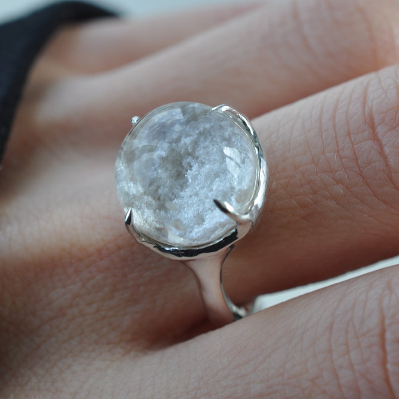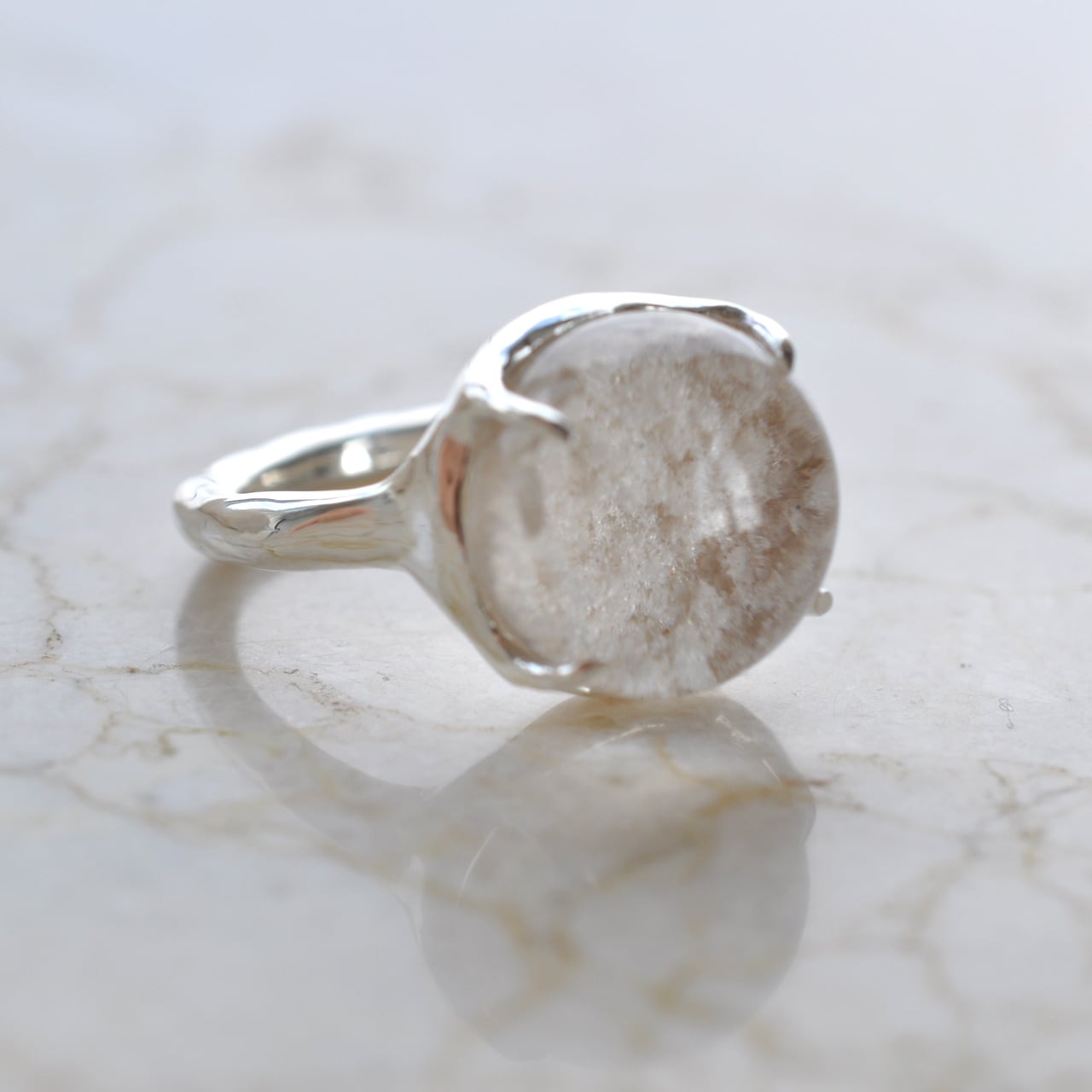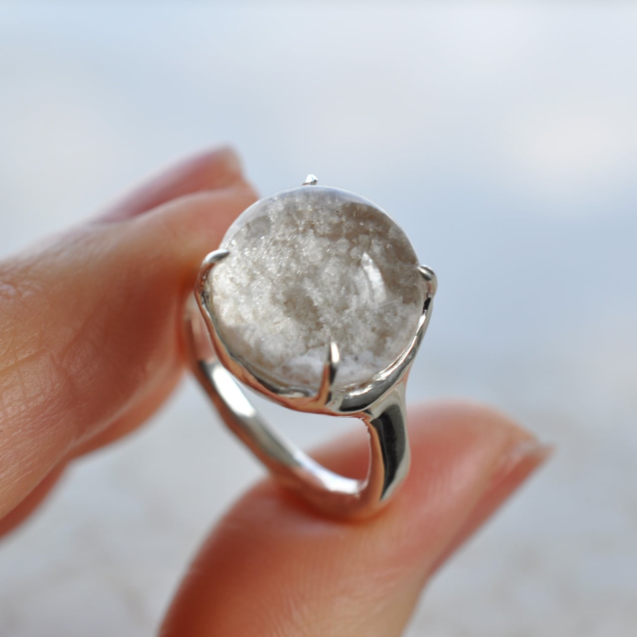 「雪景色と小さな虹」― ホワイトガーデンクォーツ シルバーリング