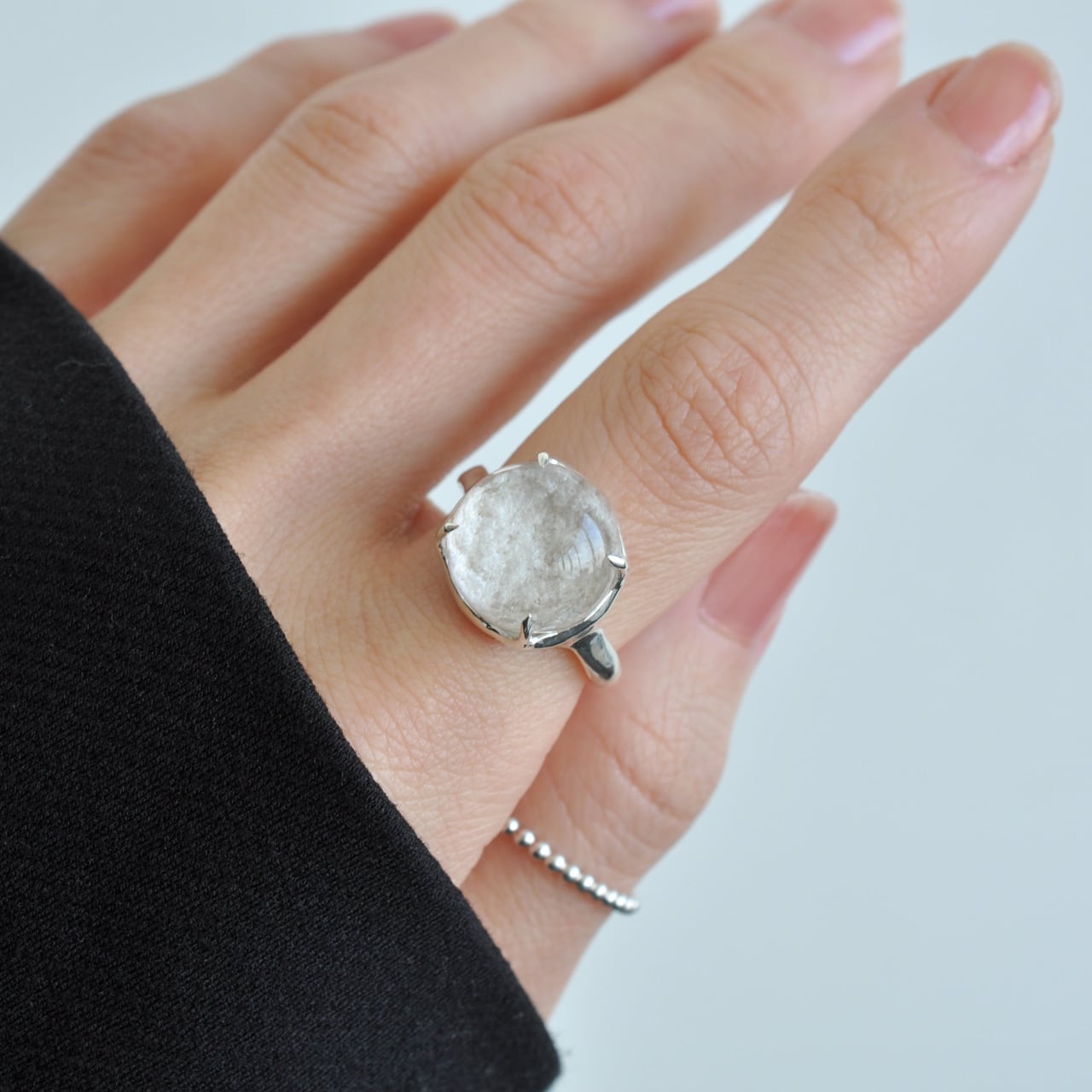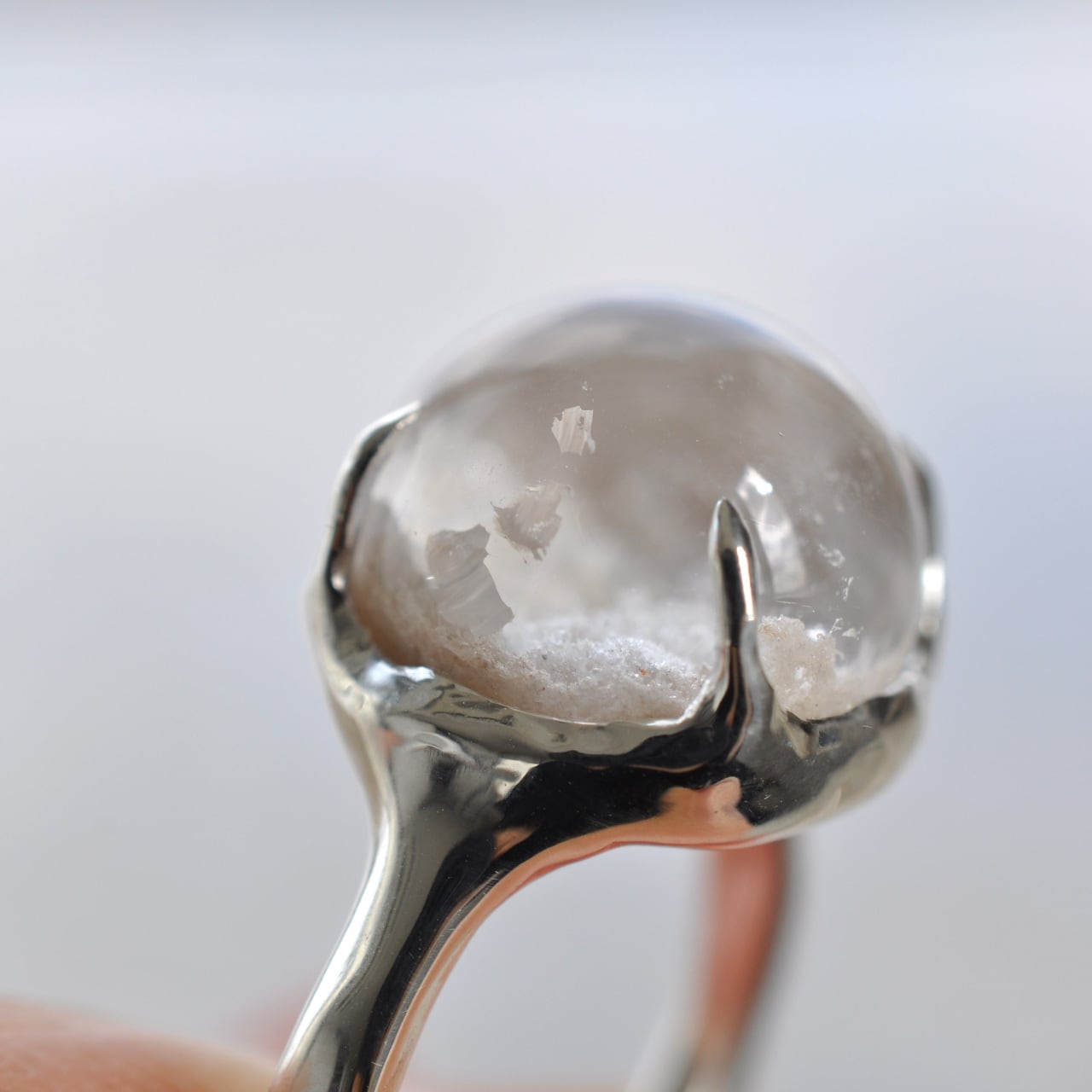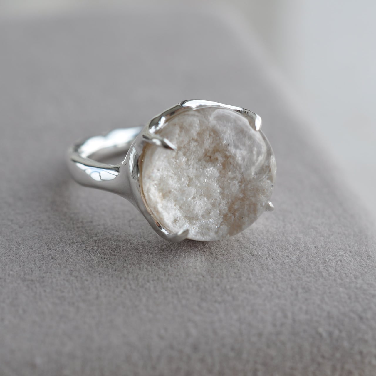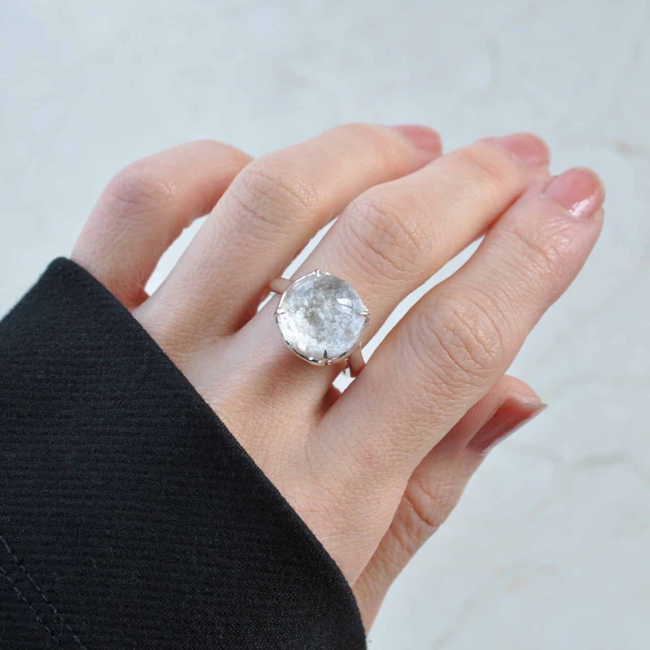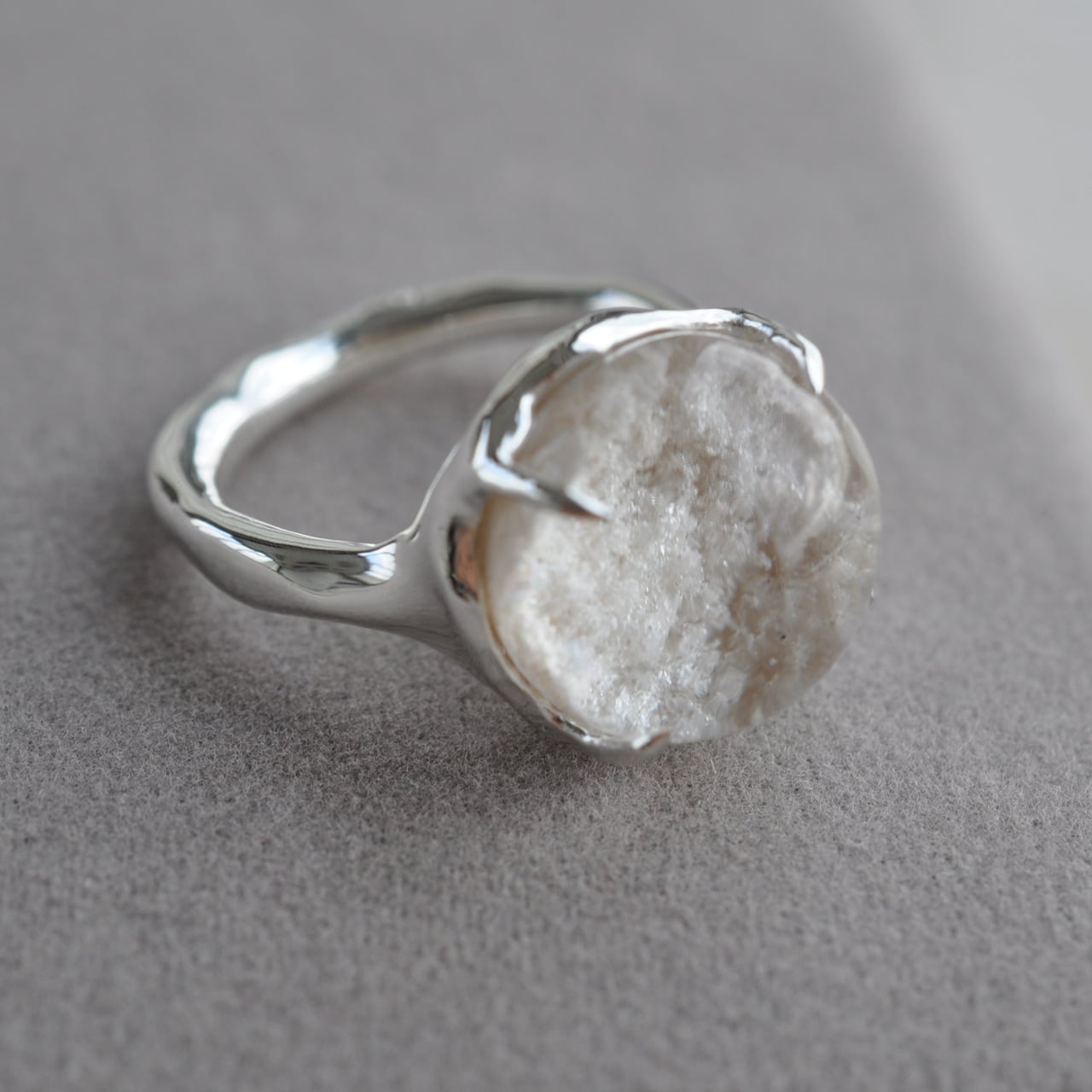 「雪景色と小さな虹」― ホワイトガーデンクォーツ シルバーリング