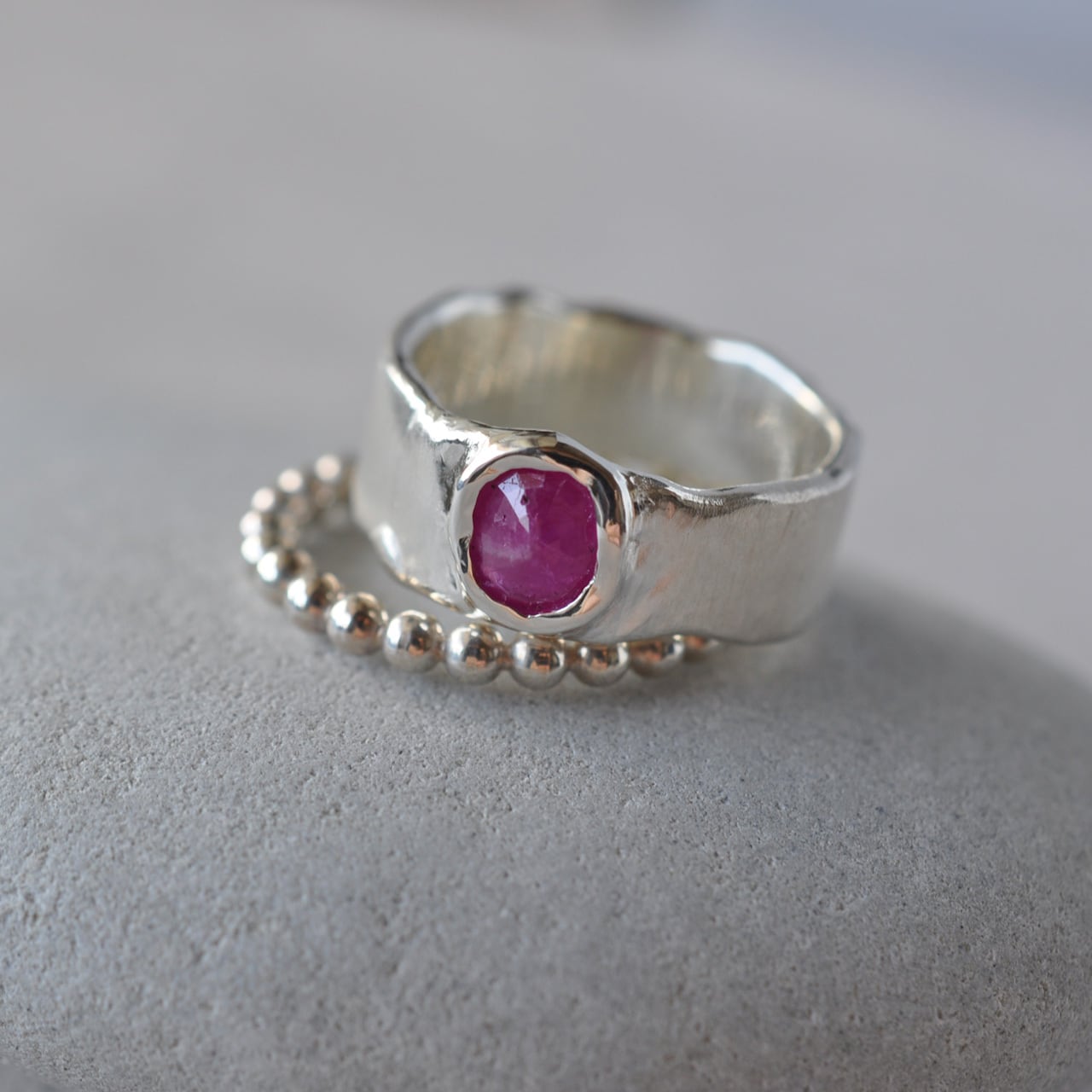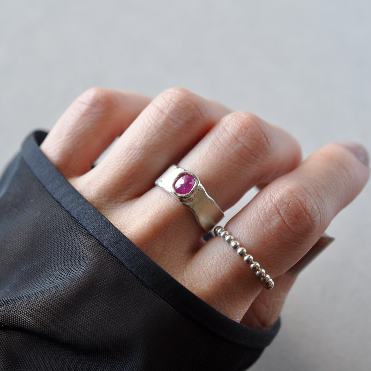 Raw Grace|Ruby Wide Ring ルビー シルバー ワイドリング