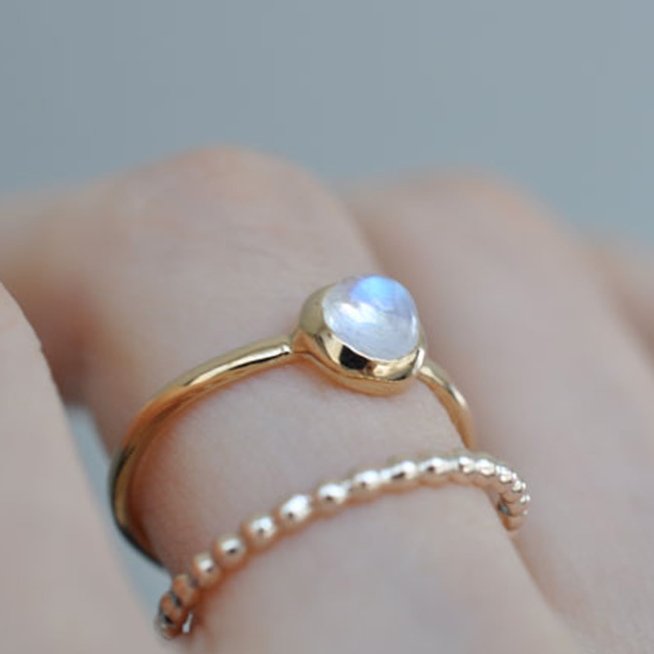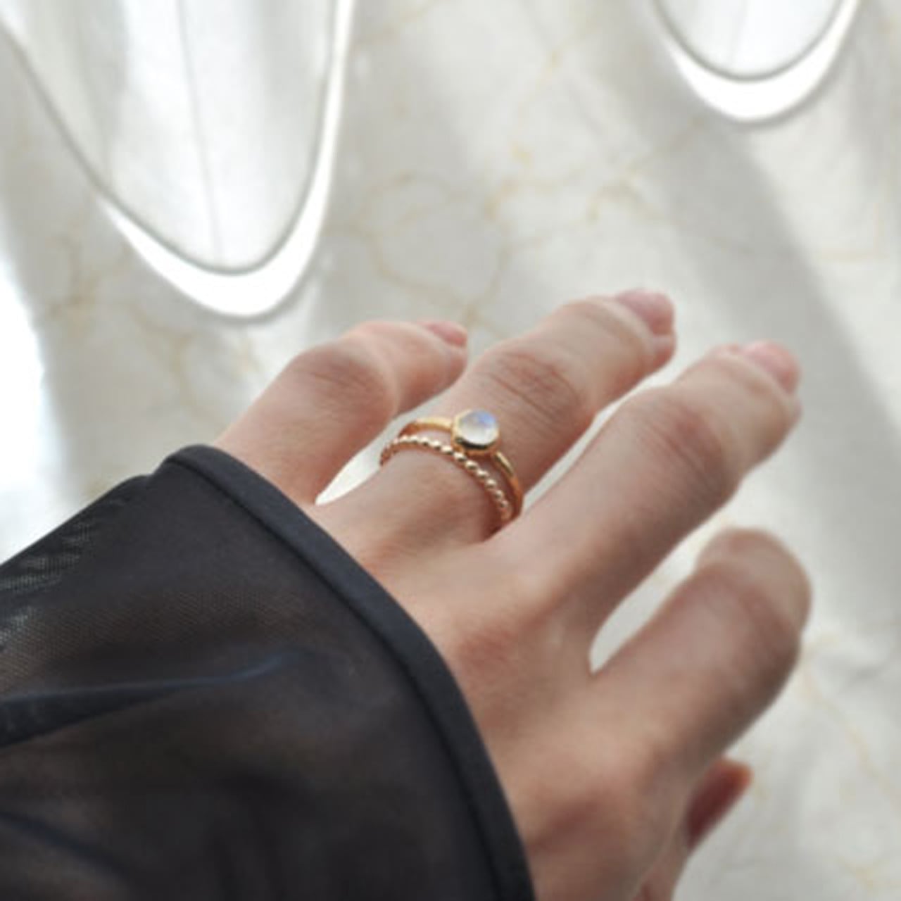 Rainbow Moon Stone Bezel Setting ring レインボームーンストーン リング
