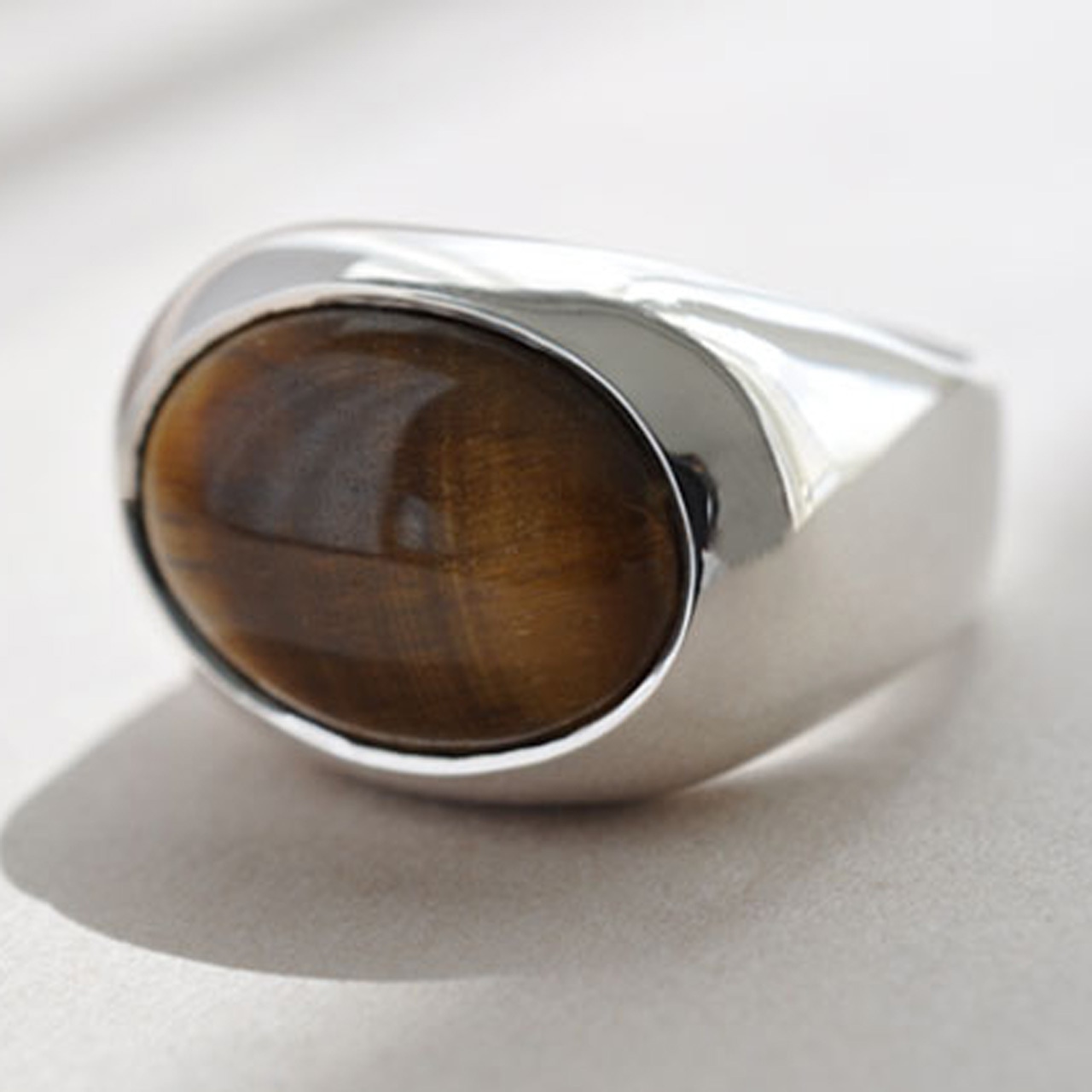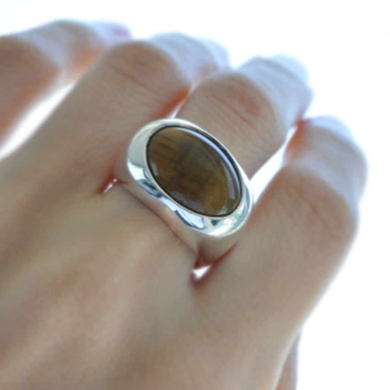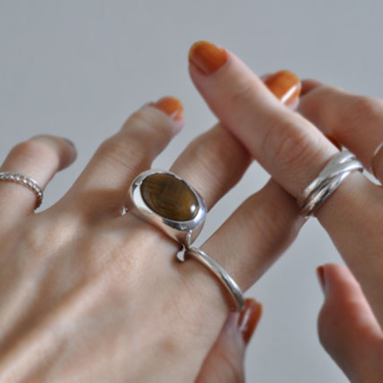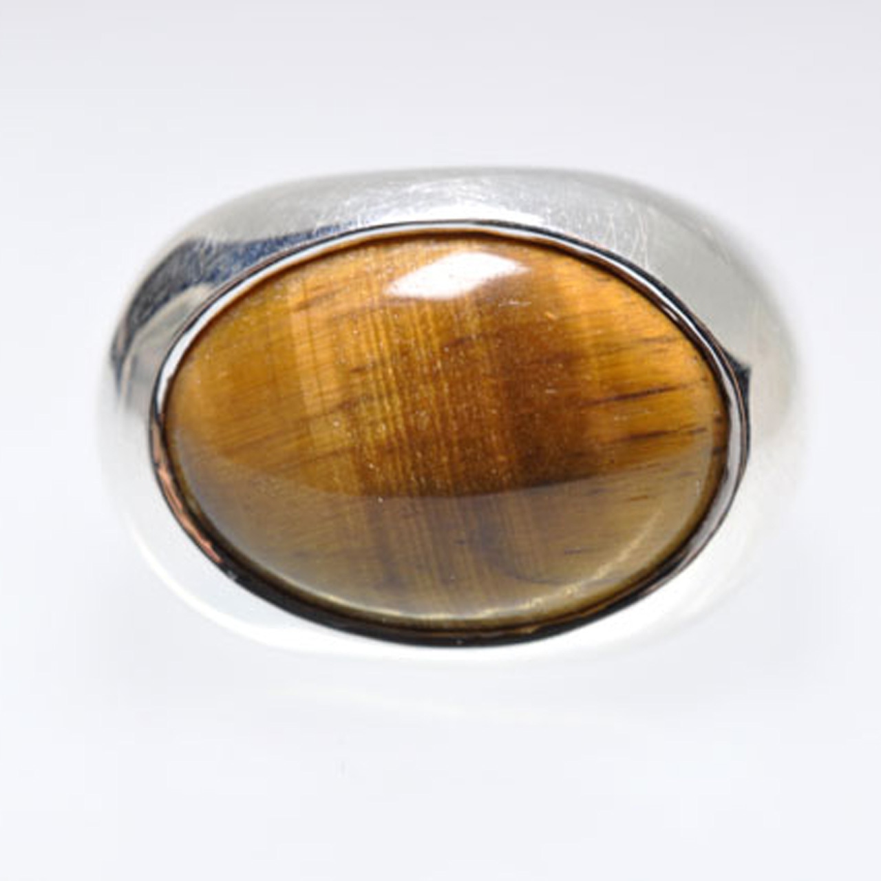 スターリングシルバーにタイガーアイをセットした1点物の天然石ボリュームリング。