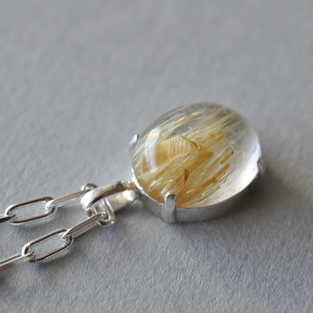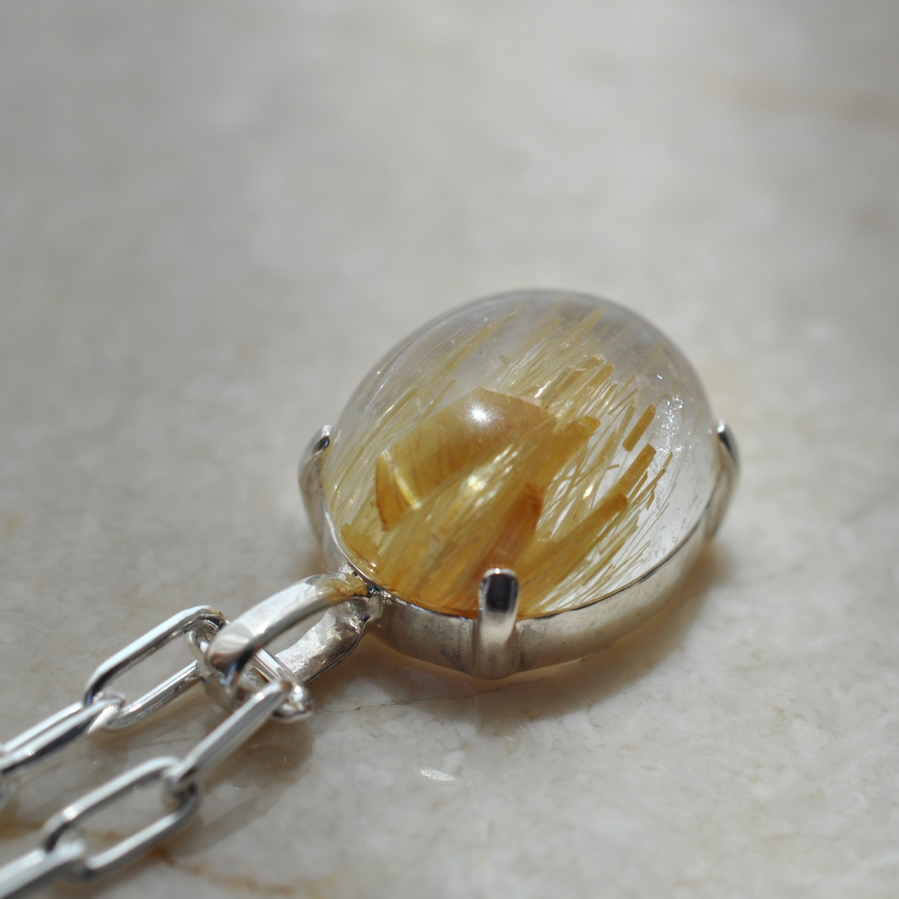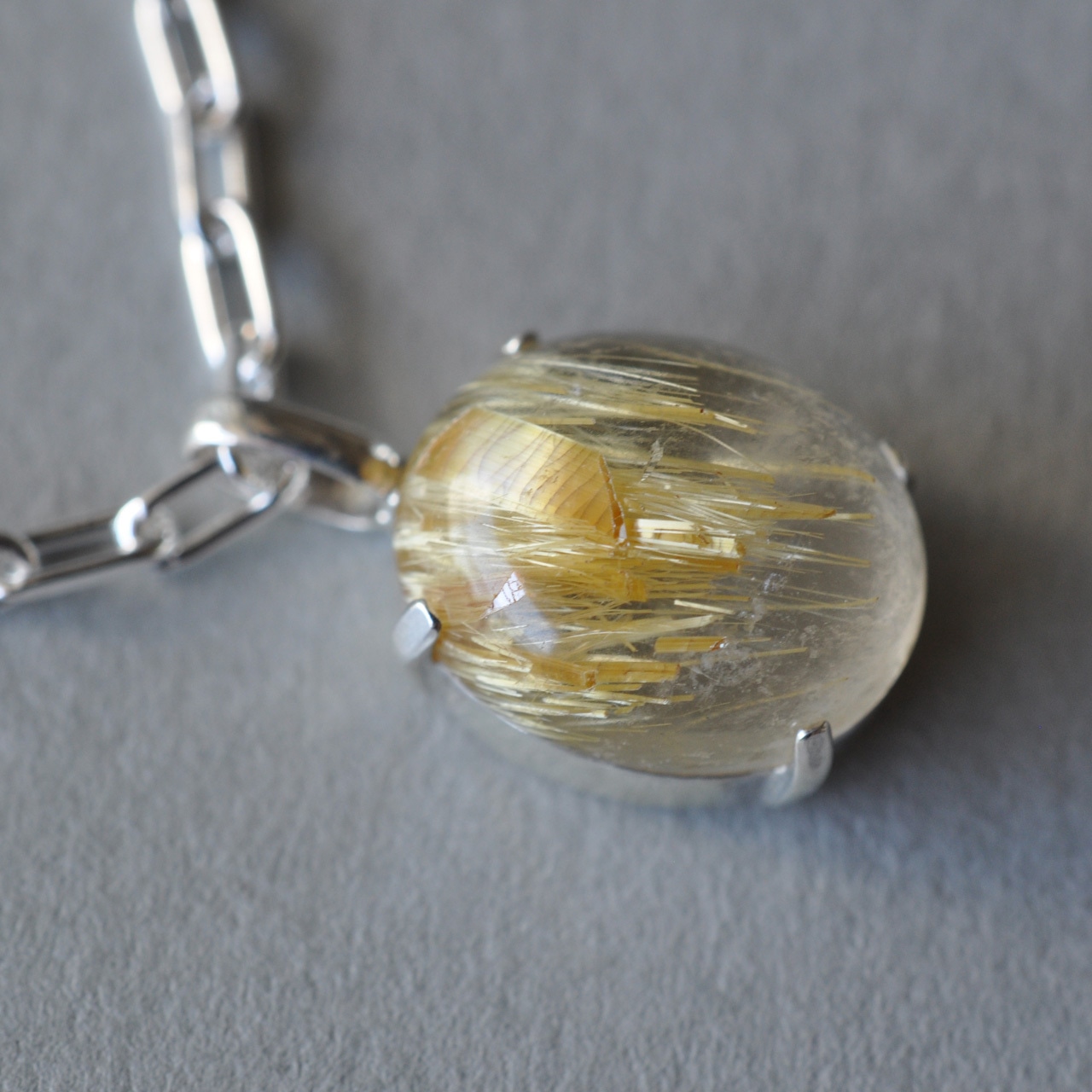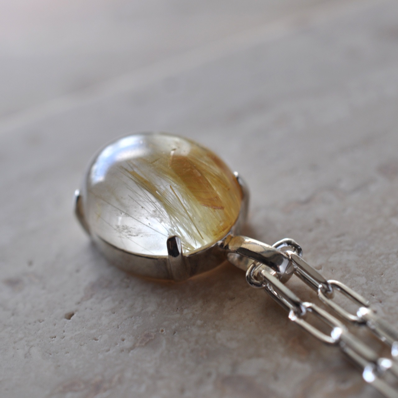 水晶越しに輝くルチルが魅力的なルチルクォーツを1点物のネックレスに仕立てました。