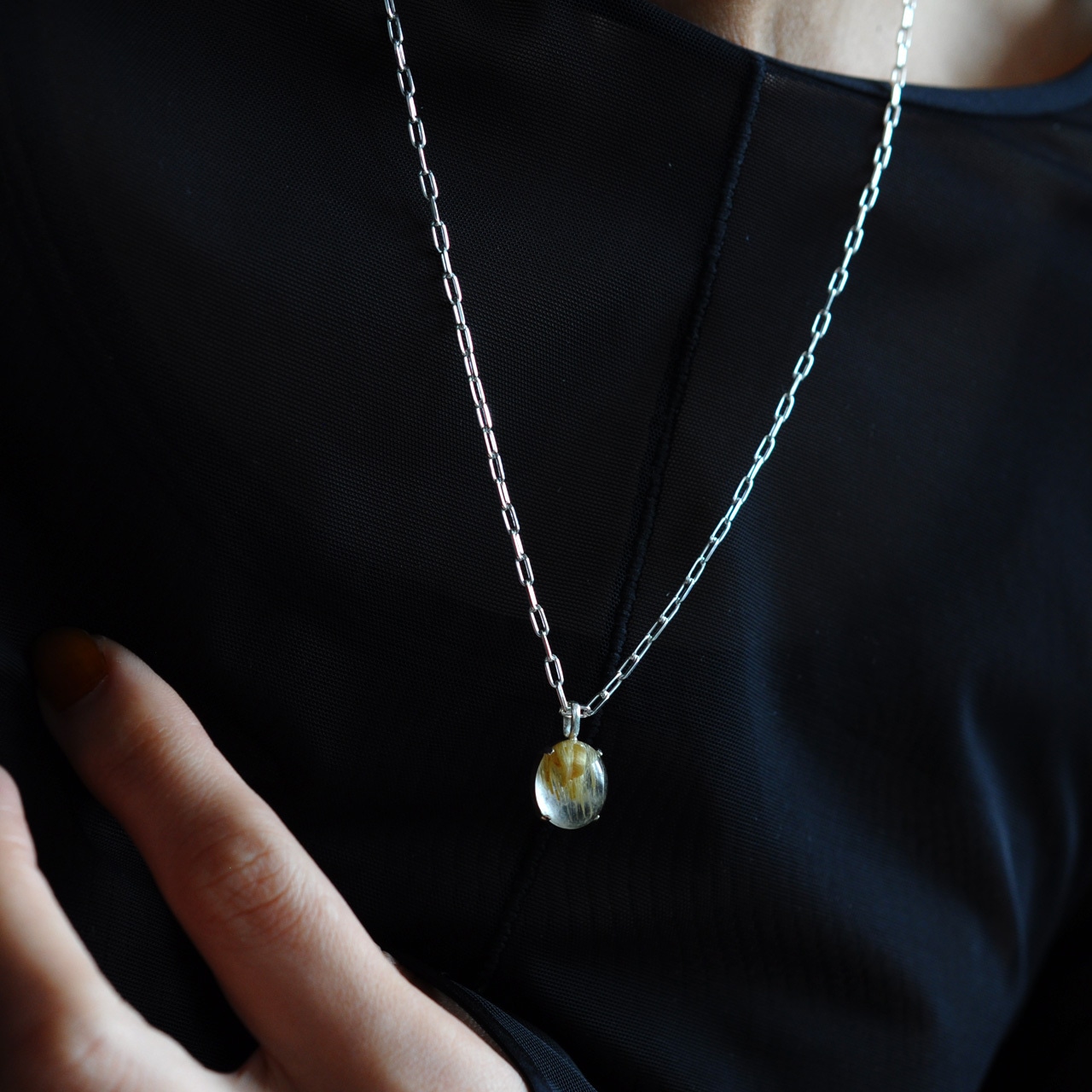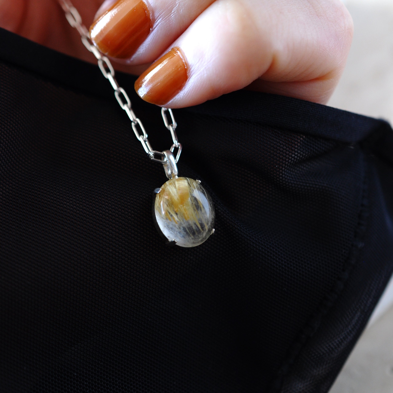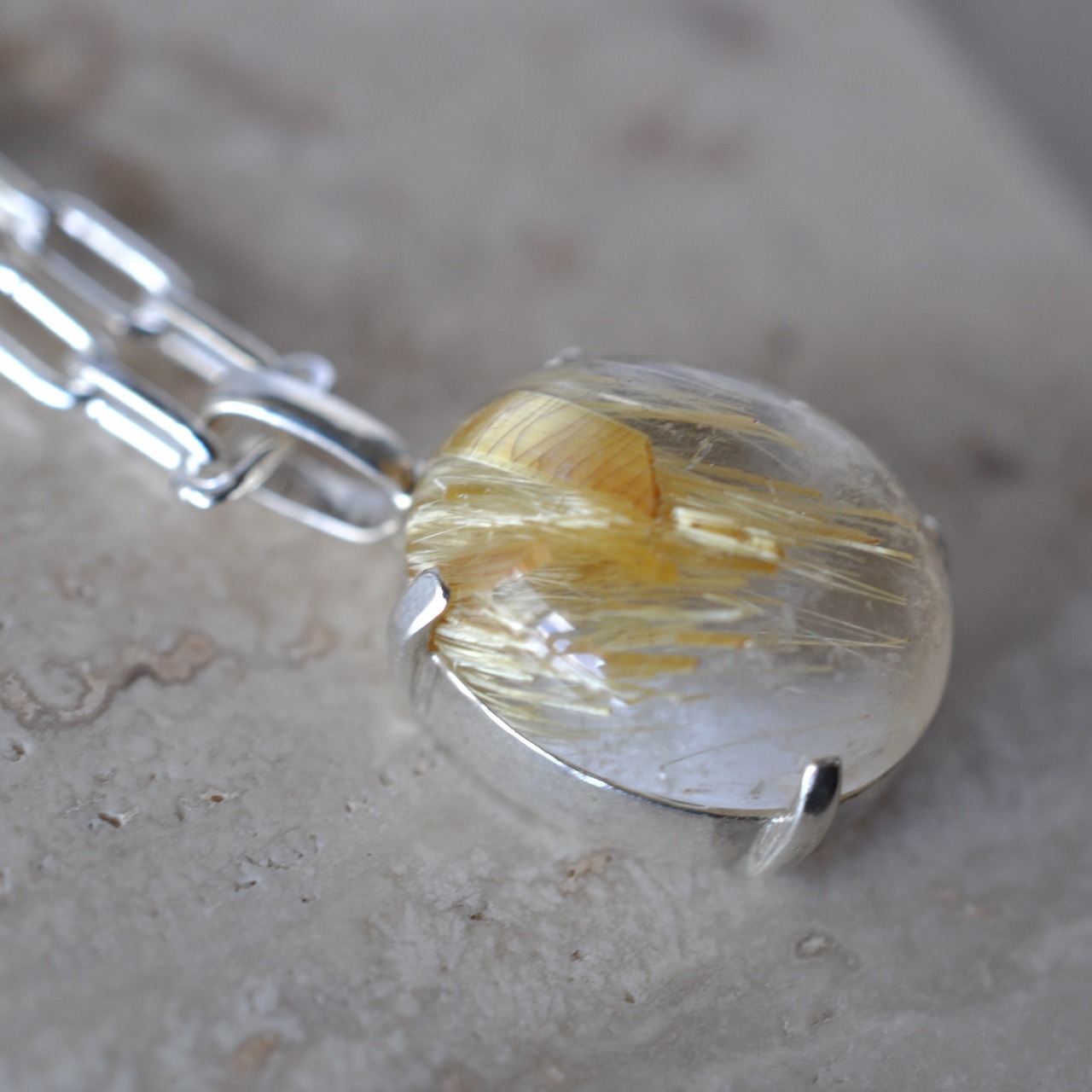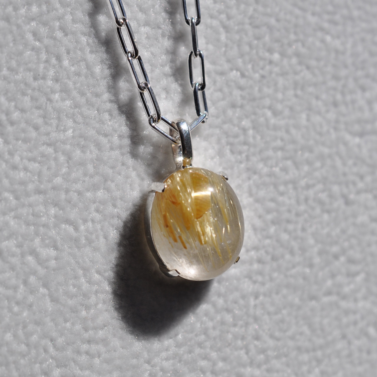水晶越しに輝くルチルが魅力的なルチルクォーツを1点物のネックレスに仕立てました。