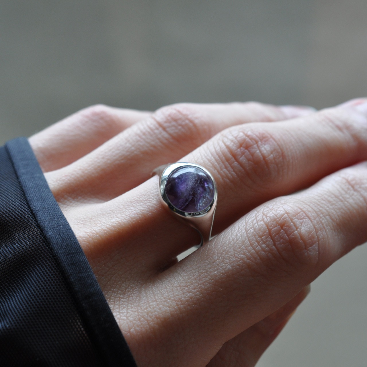 古くから英国に伝わるシグネットリングにカラーストーンをあしらい現代風にアレンジし、天然石がよく映えるシンプルなデザインに仕立てました。