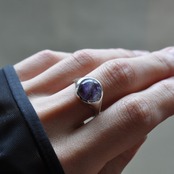 優雅さと静寂を感じさせるその魅力はまるで紫陽花の花びらが微妙に変わる色合いのようで、心に深い安らぎをもたらしてくれるようなリングです。