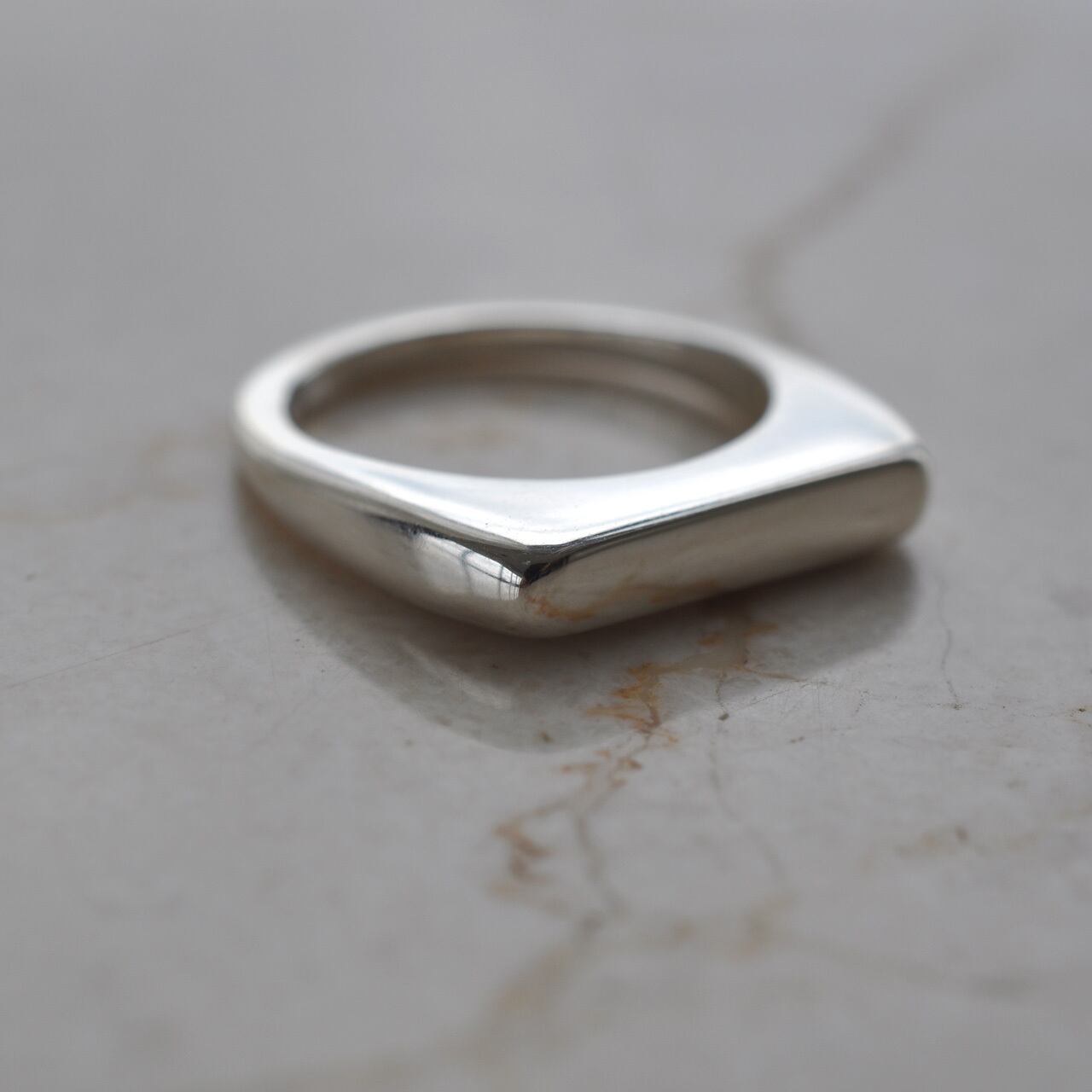 平らなリングトップが特徴的なスターリングシルバーリングです。