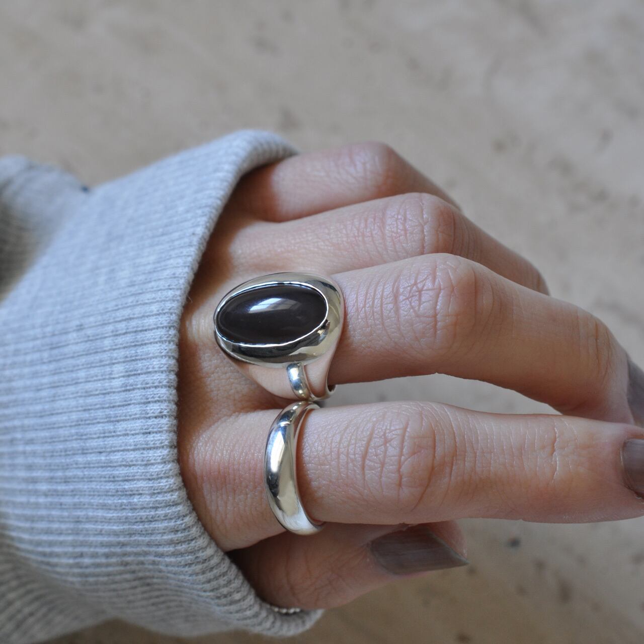 大ぶりなリングながらも、指に吸い付くようなフィット感で着け心地にもこだわっております。