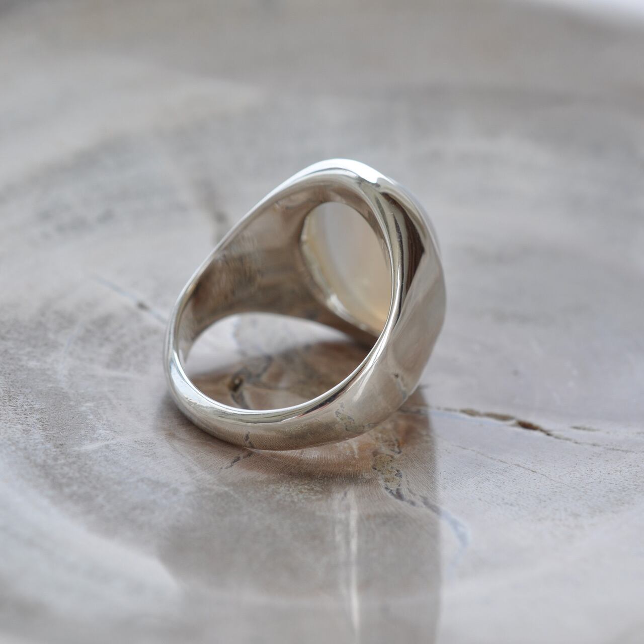 大ぶりなリングながらも、指に吸い付くようなフィット感で着け心地にもこだわっております。