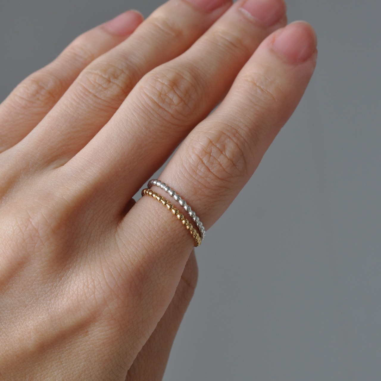 単品でのご着用はもちろん、どんなリングとの重ね付けにも重宝し、バランス良くまとめてくれる絶妙なリングです。