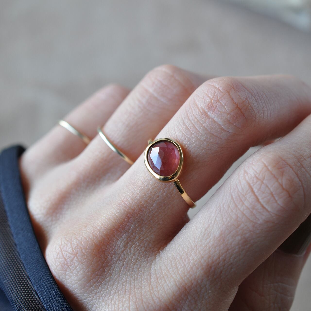 ローズカットが施されたトルマリンをシンプルな覆輪留めリングに仕立てました。