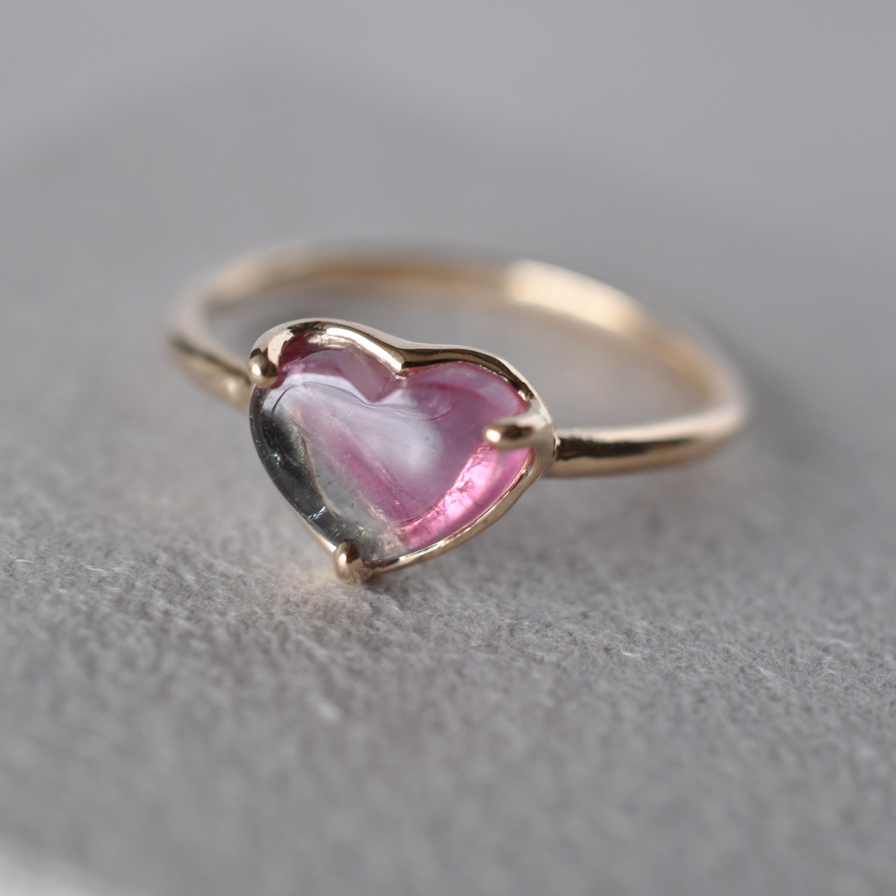 【K10】Bicolor Tourmaline バイカラートルマリン ハート リング