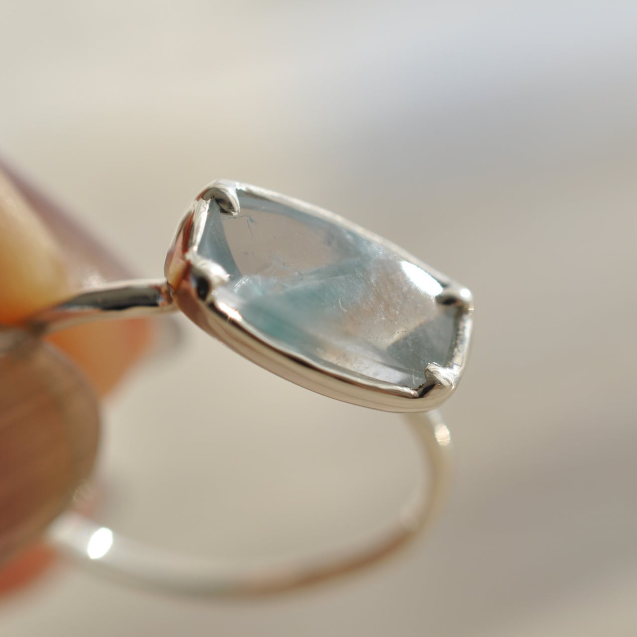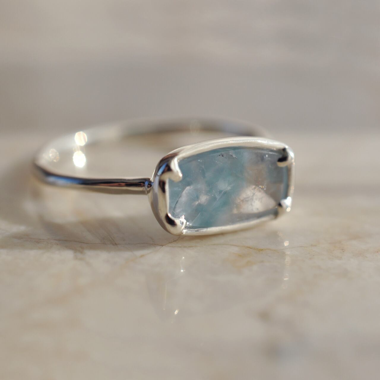 冬の静寂と透明感をそのまま閉じ込めたような、ギラライトインクォーツの1点物リングです。